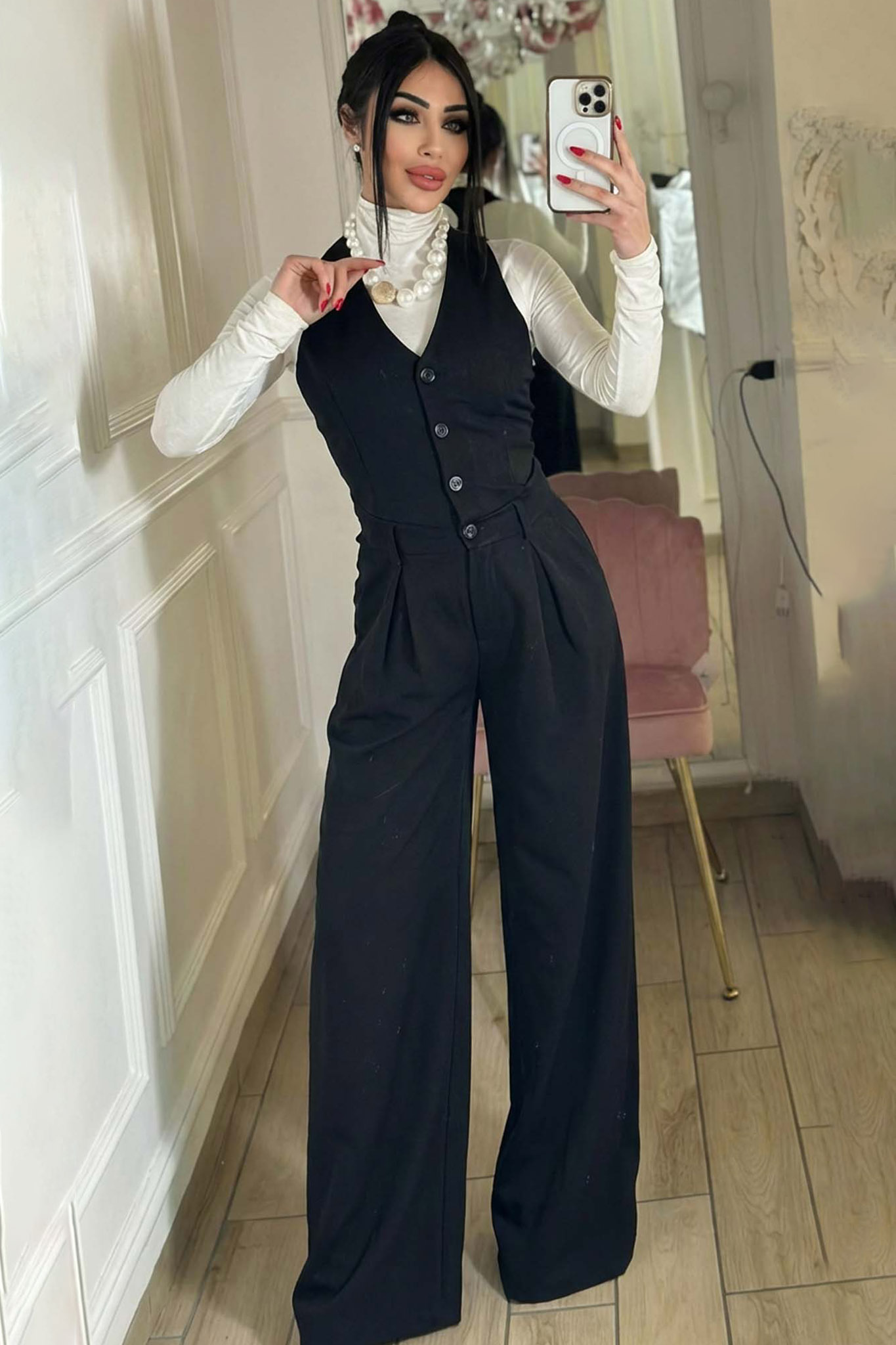 Ολόσωμη Φόρμα που συνδυάζει την αυστηρότητα ενός κοστουμιού με τη θηλυκότητα μιας μοντέρνας σιλουέτας. Σχεδιασμένη για τη γυναίκα που θέλει να ξεχωρίζει με το στυλ της από το πρωί έως το βράδυ.