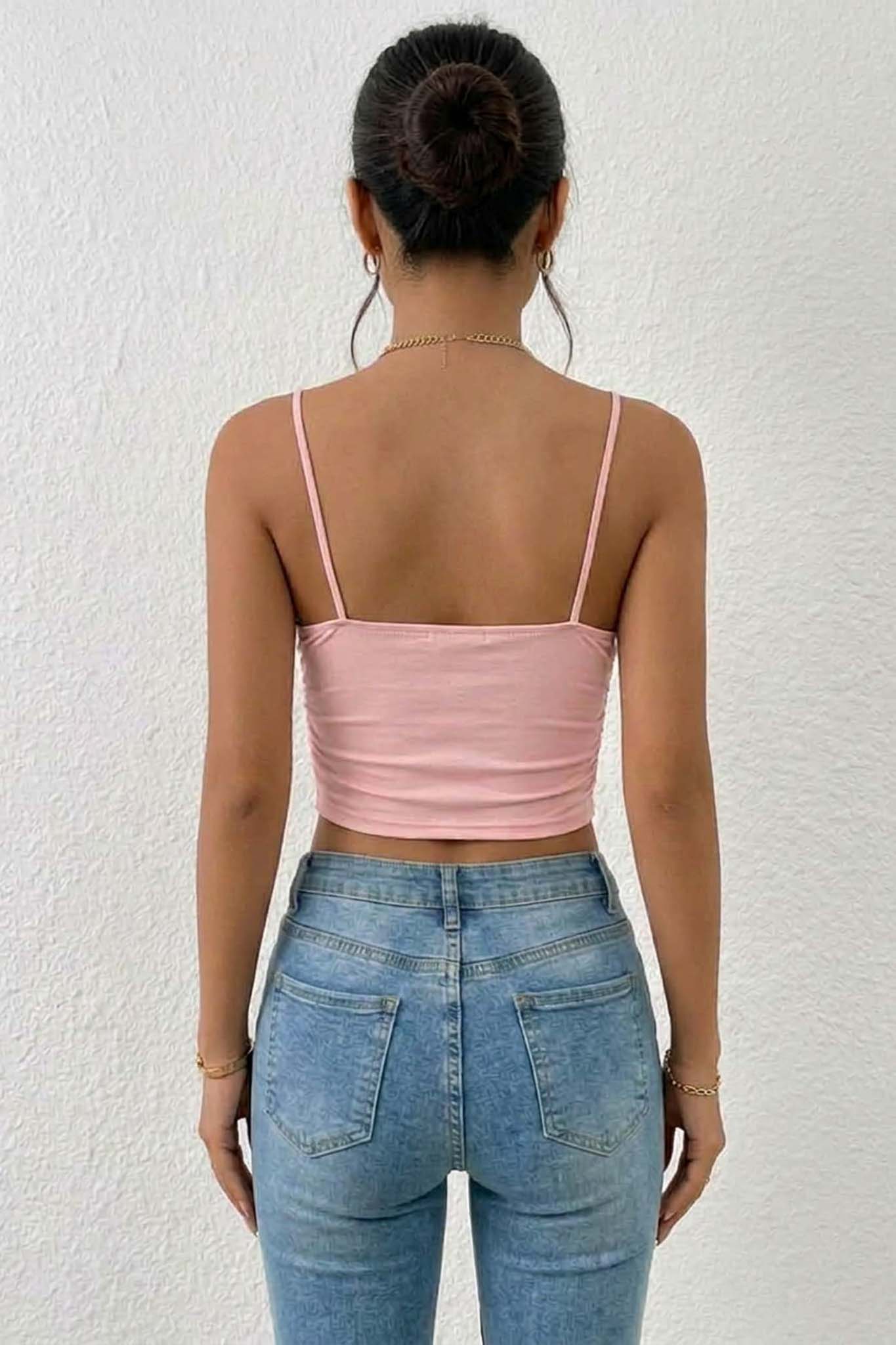 Debbieτοπ με τιράντες και πουά σχέδιο ροζ