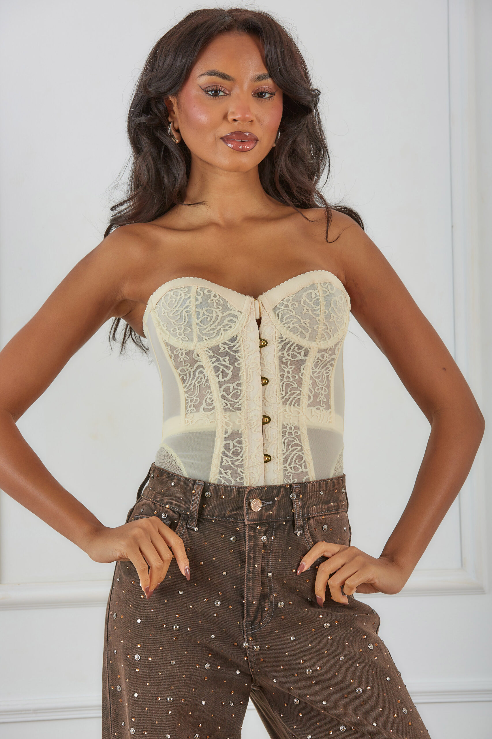 Κορσές με δέσιμο στο πίσω μέρος ώστε να ρυθμίζεται στο κάθε σώμα. Διαθέτει χρυσά κουμπώματα.
