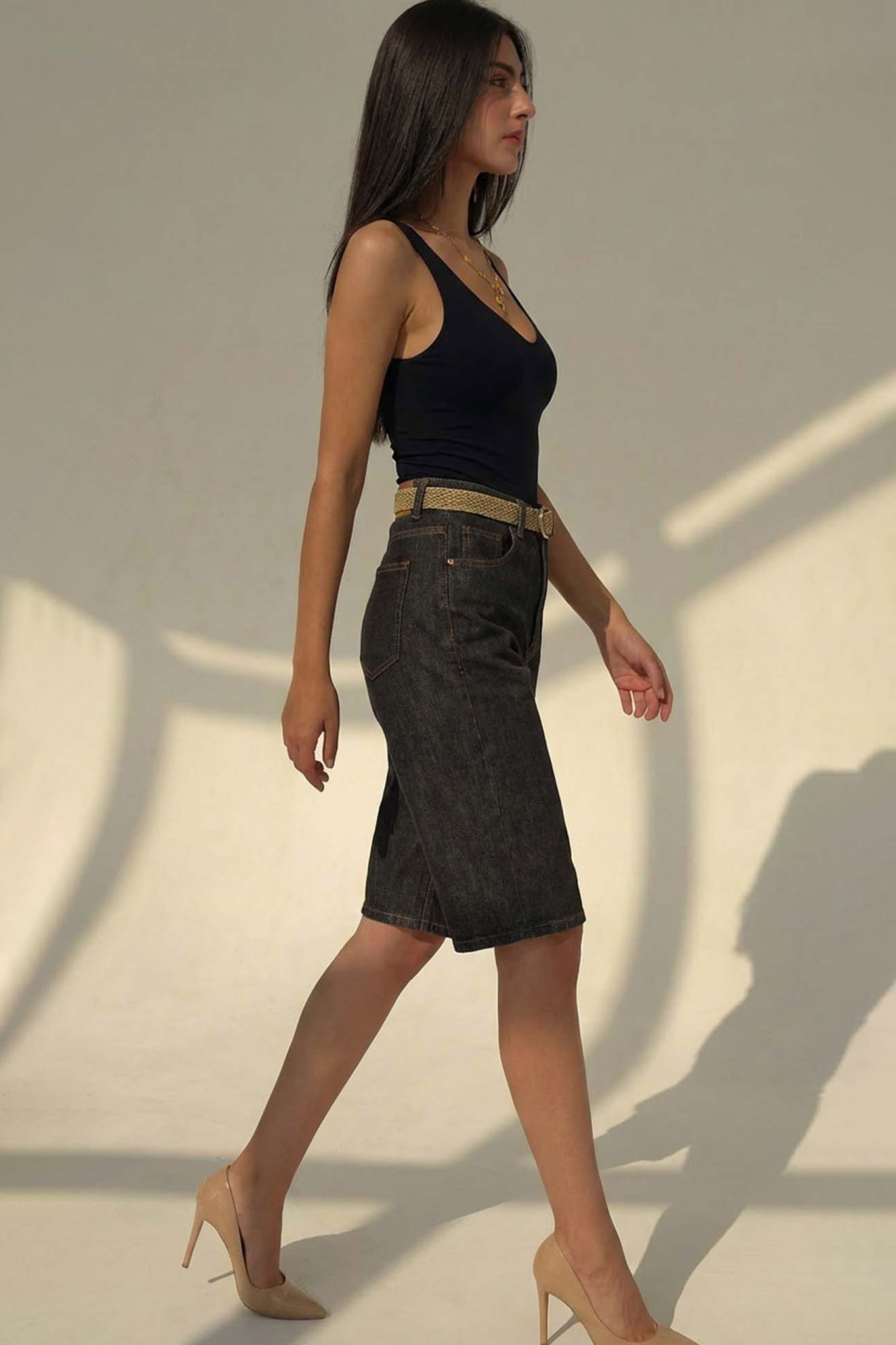 Τζιν βερμούδα με ζωνάκι στη μέση σε άνετη μακριά ίσια γραμμή για να απογειώσει το στυλ σας.