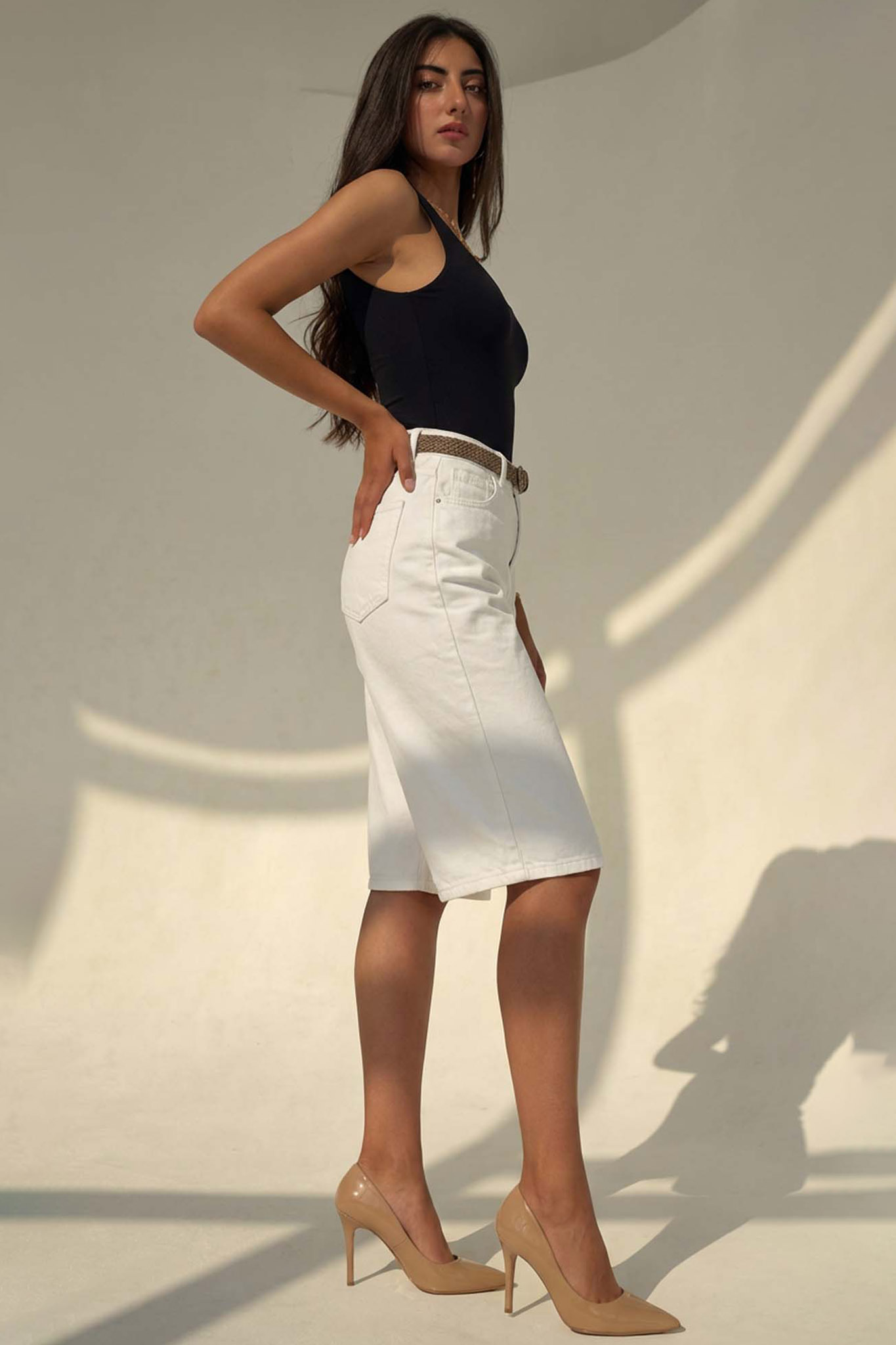 Denerisτζιν βερμούδα με ζωνάκι λευκό