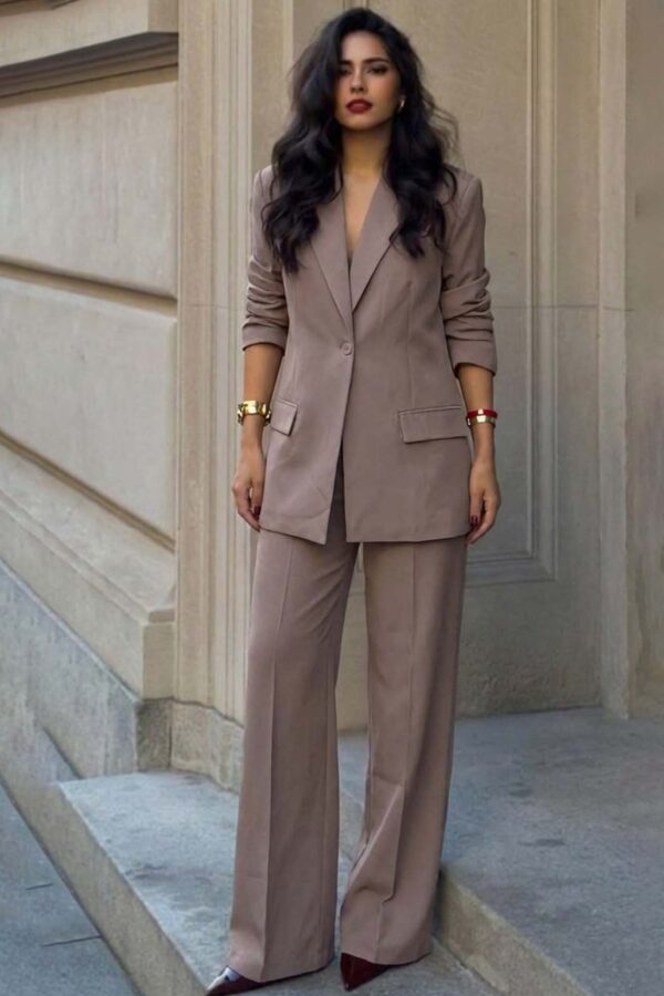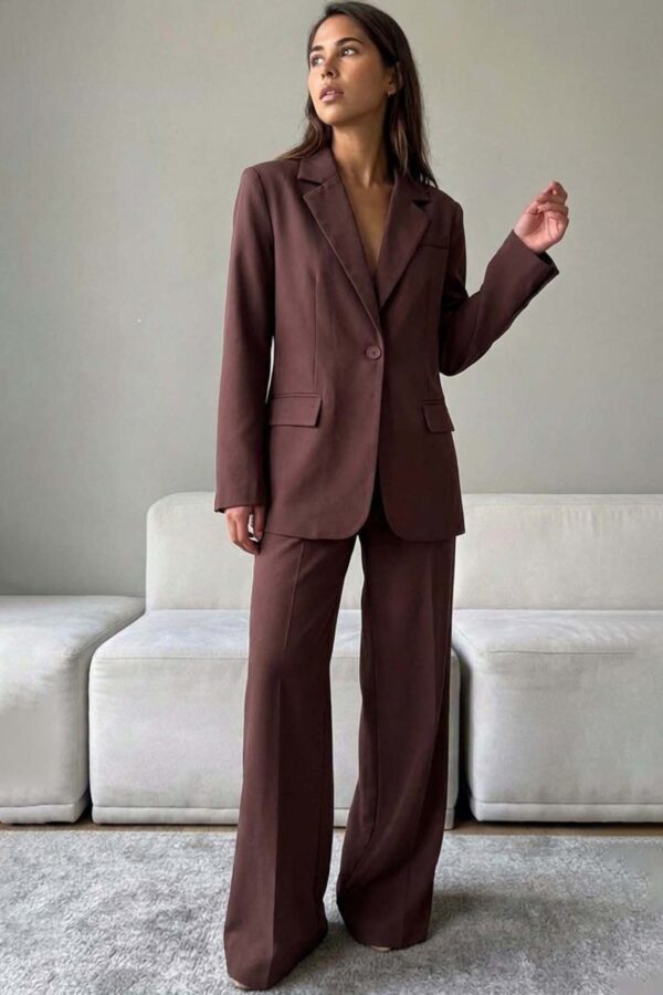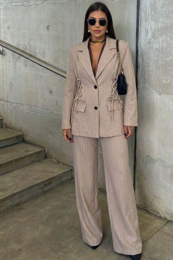 Ένα εντυπωσιακό σετ σακακιού και παντελονιού που συνδυάζει την κομψότητα με τη μοντέρνα αισθητική. Το μακρύ σακάκι διαθέτει πέτο και διακοσμητικές τσέπες που προσθέτουν ένα ιδιαίτερο στοιχείο στο σύνολο. Στο εσωτερικό η animal print φόδρα δίνει μια αναπάντεχη και εκλεπτυσμένη πινελιά, αποκαλύπτοντας ένα άγγιγμα διακριτικής πολυτέλειας. Το παντελόνι συμπληρώνει το σετ με στυλ και άνεση. Η ζώνη στη μέση προσθέτει ένα σημείο ενδιαφέροντος, ενώ το λάστιχο στη μέση εξασφαλίζει άψογη εφαρμογή και άνεση. Αυτό το σετ είναι ιδανικό για κάθε γυναίκα που θέλει να δημιουργήσει ένα σύνολο που συνδυάζει την επαγγελματική κομψότητα με την τελευταία λέξη της μόδας. Κατάλληλο για επαγγελματικές εμφανίσεις ή κομψές κοινωνικές εκδηλώσεις. Σακάκι Μήκος 78cm στήθος 55cm μανίκι 50cm Παντελόνι Μήκος 95cm μέση 35cm