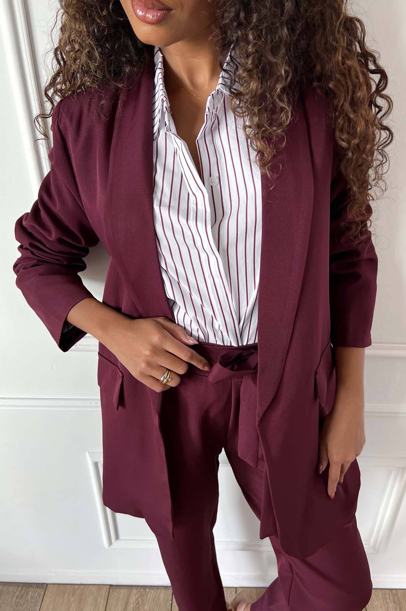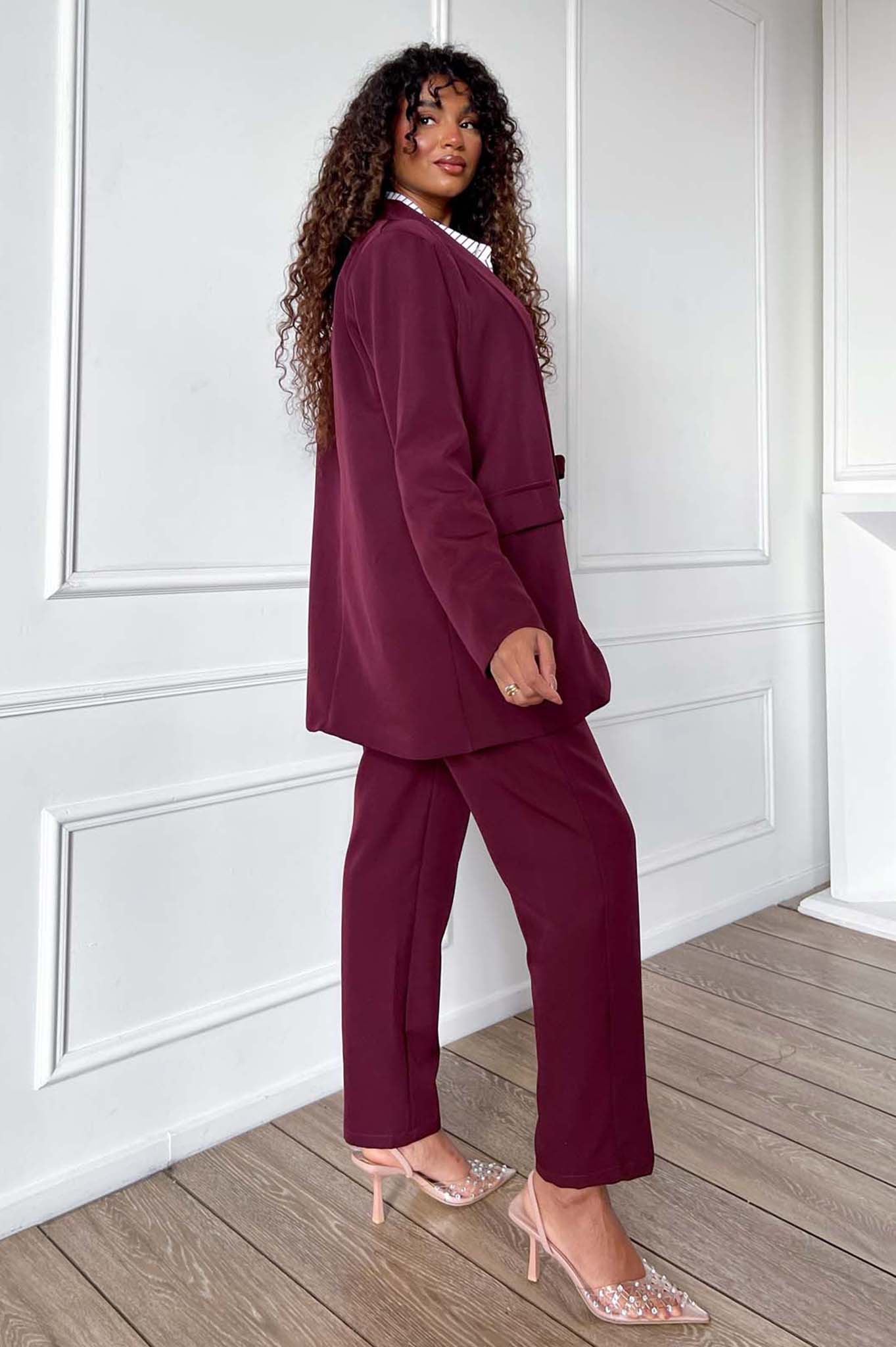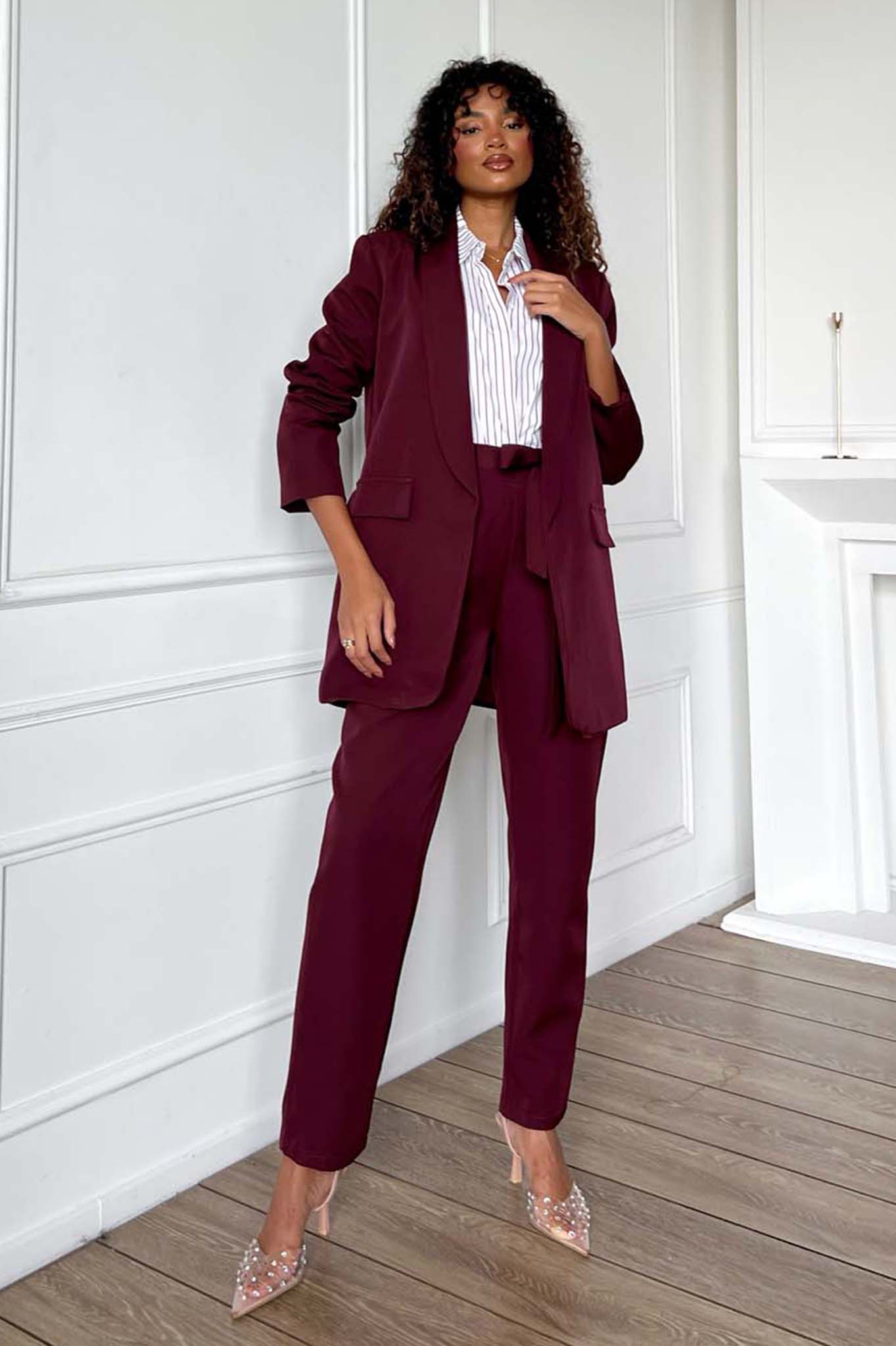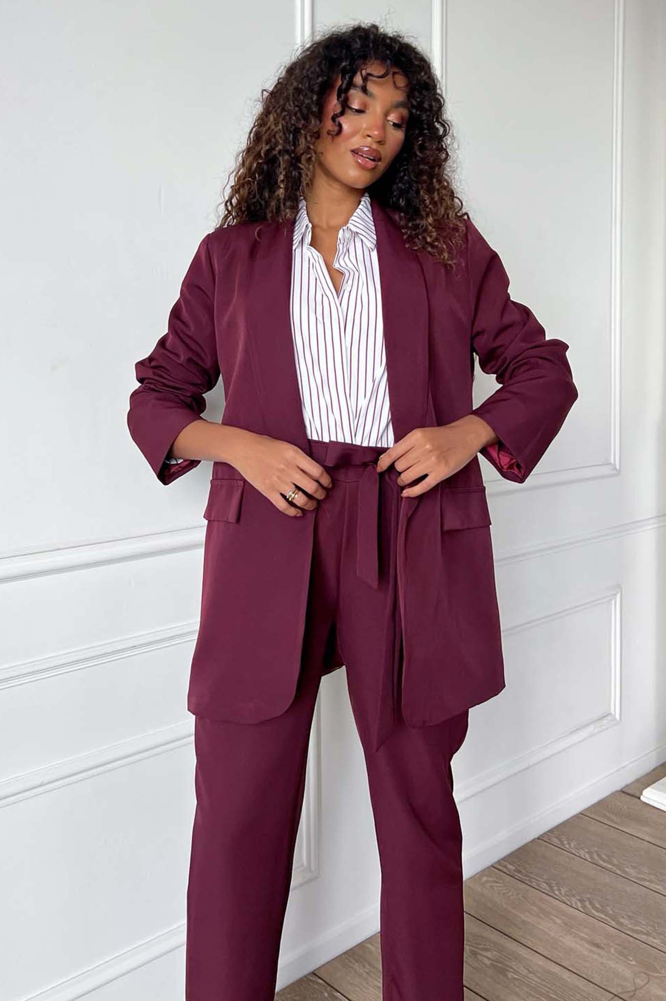 Σετ σακάκι παντελόνι. Το παντελόνι διαθέτει ζωνάκι και λάστιχο στο πίσω μέρος. Σακάκι: μήκος 77cm, στήθος 108cm, μανίκι 62cm. Παντελόνι μήκος 101cm, μέση 66cm.