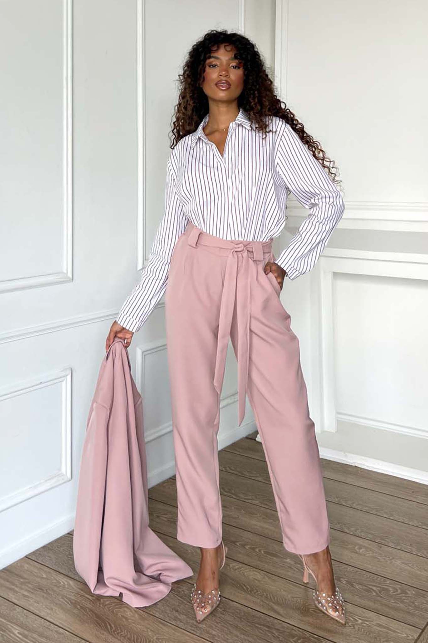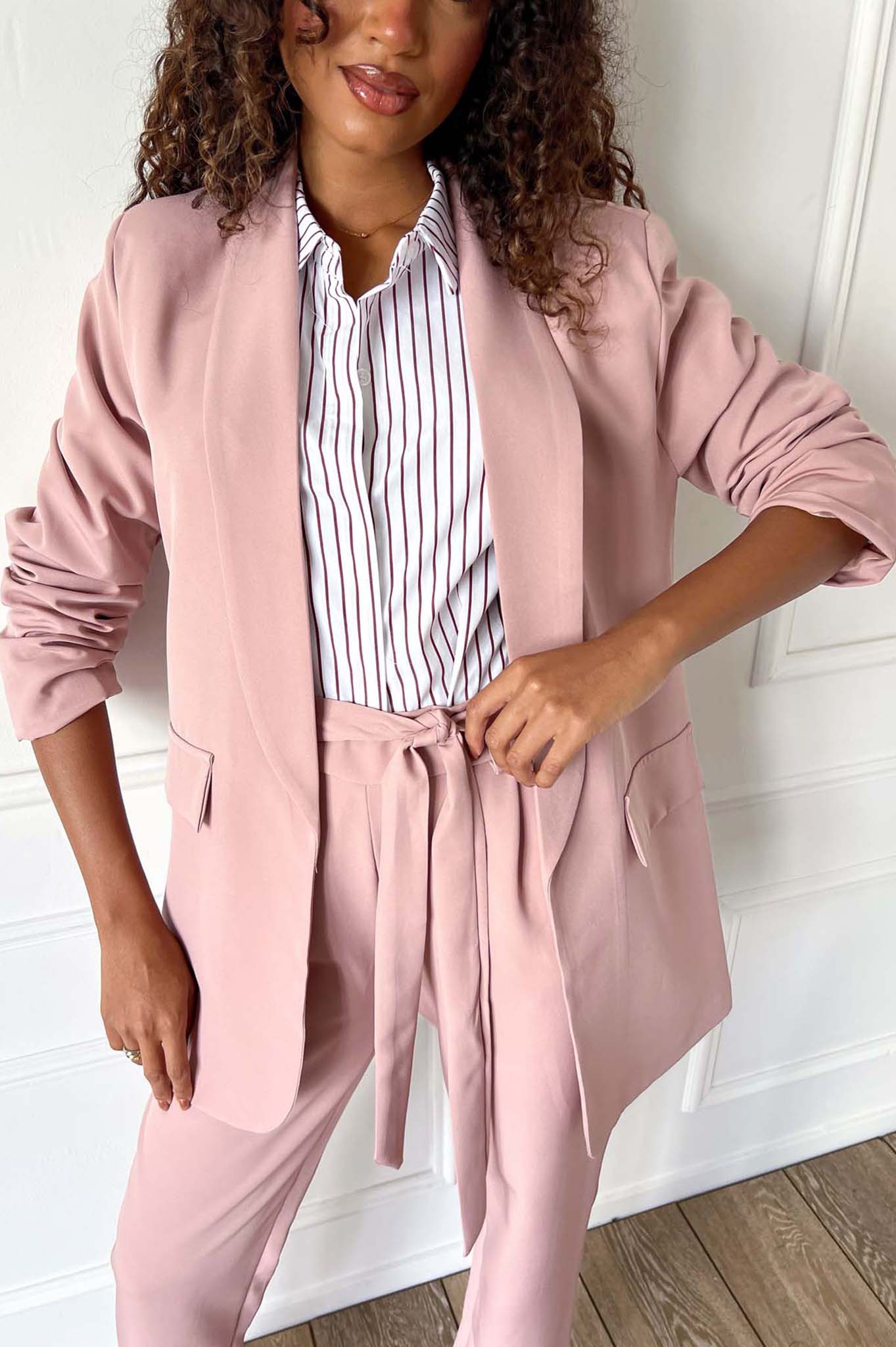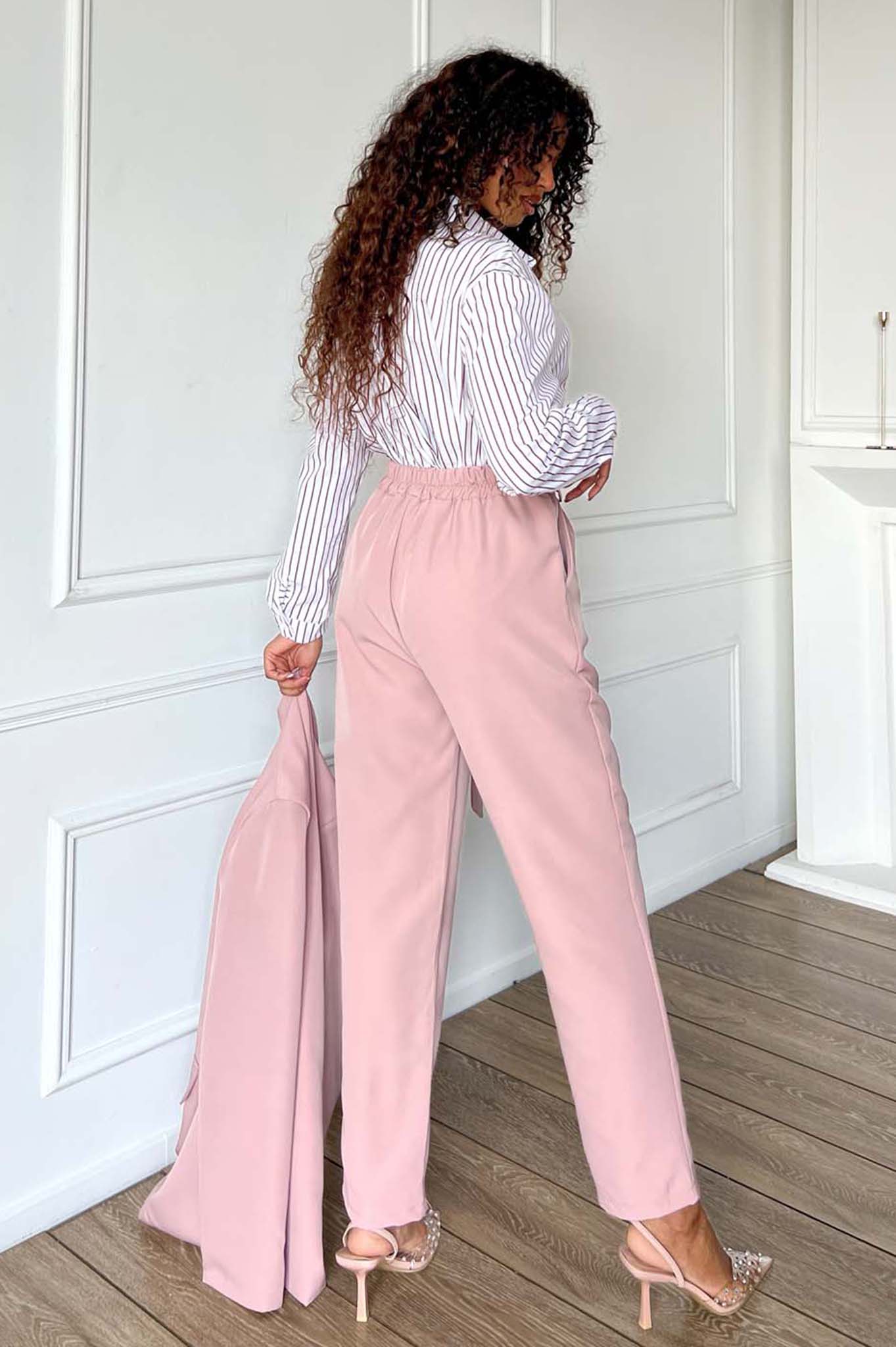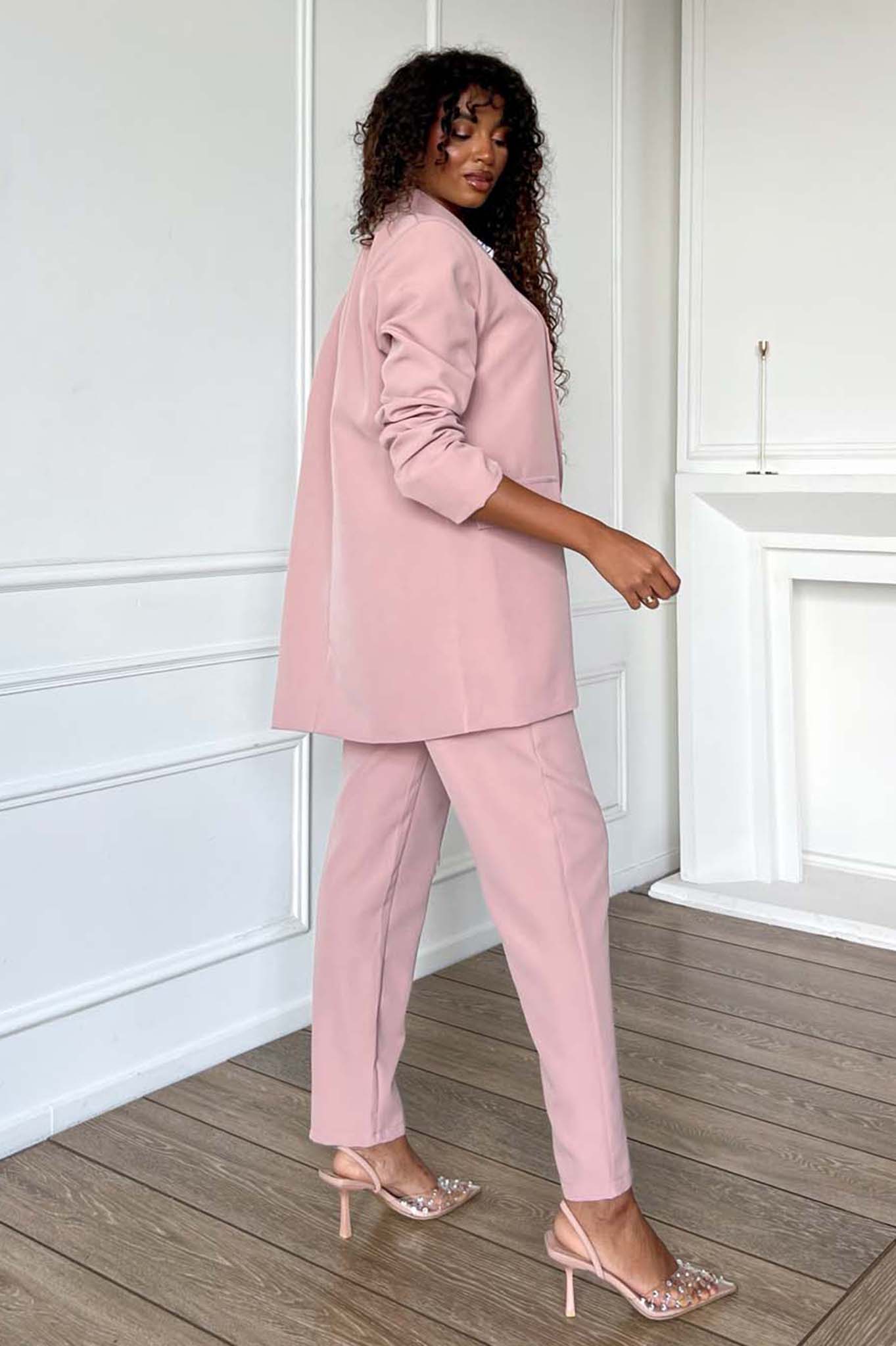 Σετ σακάκι παντελόνι. Το παντελόνι διαθέτει ζωνάκι και λάστιχο στο πίσω μέρος. Σακάκι: μήκος 77cm, στήθος 108cm, μανίκι 62cm. Παντελόνι μήκος 101cm, μέση 66cm.