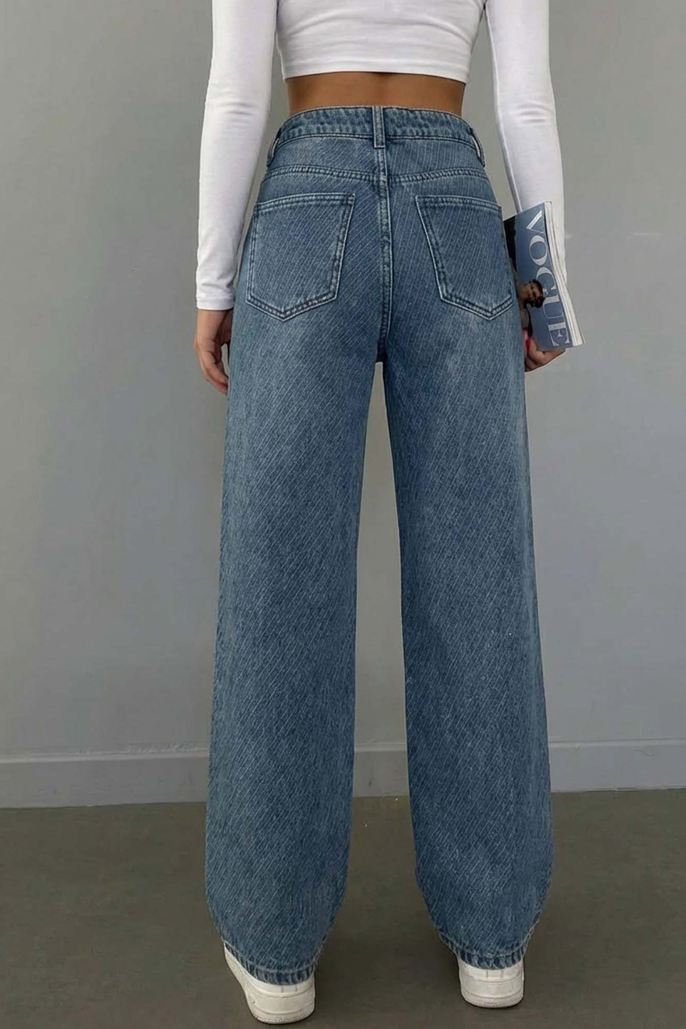 Αυτό το wide-leg denim παντελόνι αποτελεί ένα εντυπωσιακό statement κομμάτι, διακοσμημένο με διαγώνιες ρίγες από λαμπερά στρας που καλύπτουν όλη την επιφάνειά του. Διαθέτει ψηλόμεση, φαρδιά γραμμή που χαρίζει άνεση και στυλ, ενώ η λεπτομέρεια με τη δαντέλα στη μέση και στις τσέπες προσθέτει μια μοναδική θηλυκή πινελιά.