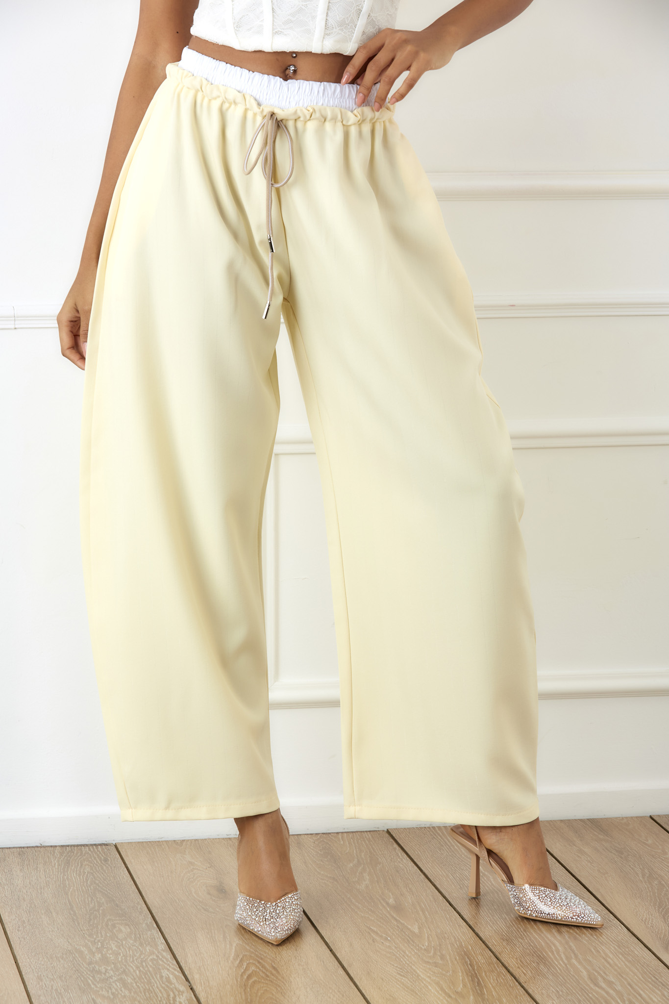 Παντελόνι με λάστιχο και κορδόνι στη μέση για πιο άνετη εφαρμογή.