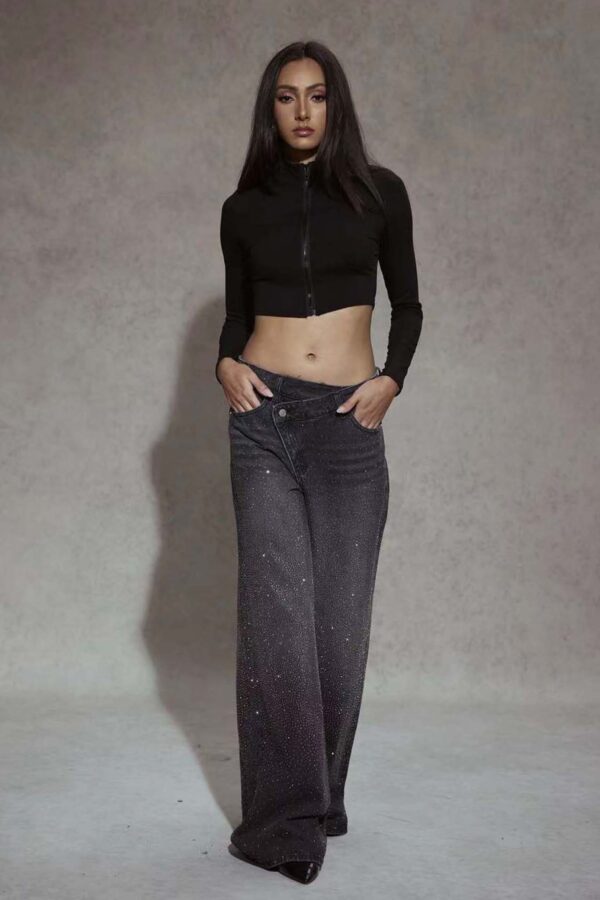 Παντελόνι φόρμας με παγιέτες στο πλάι. Μήκος 105cm, μέση 66cm.