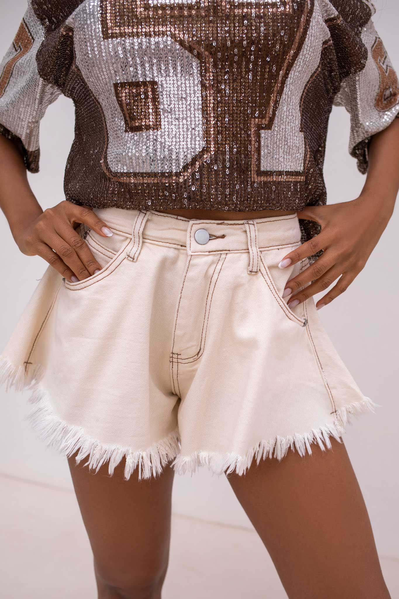 Tζιν σορτς με σταθερή denim ύφανση και μοντέρνα αισθητική, με κύριο στοιχείο τα έντονα ξέφτια στο τελείωμα που δίνουν έναν ανεπιμέλητο και cool χαρακτήρα. Διαθέτει ψηλόμεση εφαρμογή που κολακεύει τη σιλουέτα, κλασικό σχέδιο με τσέπες και κλείσιμο με κουμπί και φερμουάρ, ενώ τα φαρδιά μπατζάκια εξασφαλίζει άνεση και ελευθερία κινήσεων.