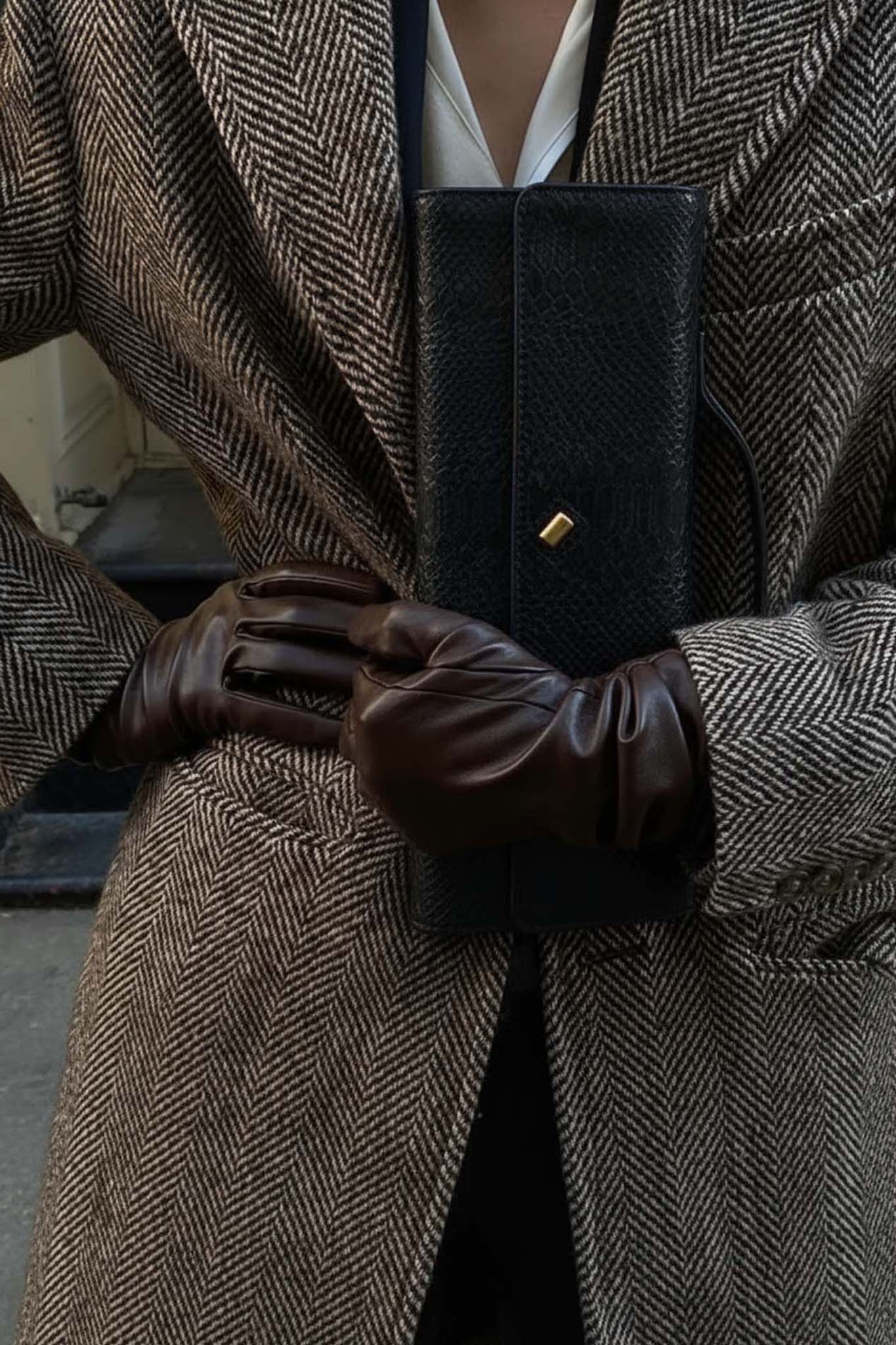 Tσάντα φάκελος με σχέδιο κροκο και διακριτική χρυσή λεπτομέρεια στο κούμπωμα.