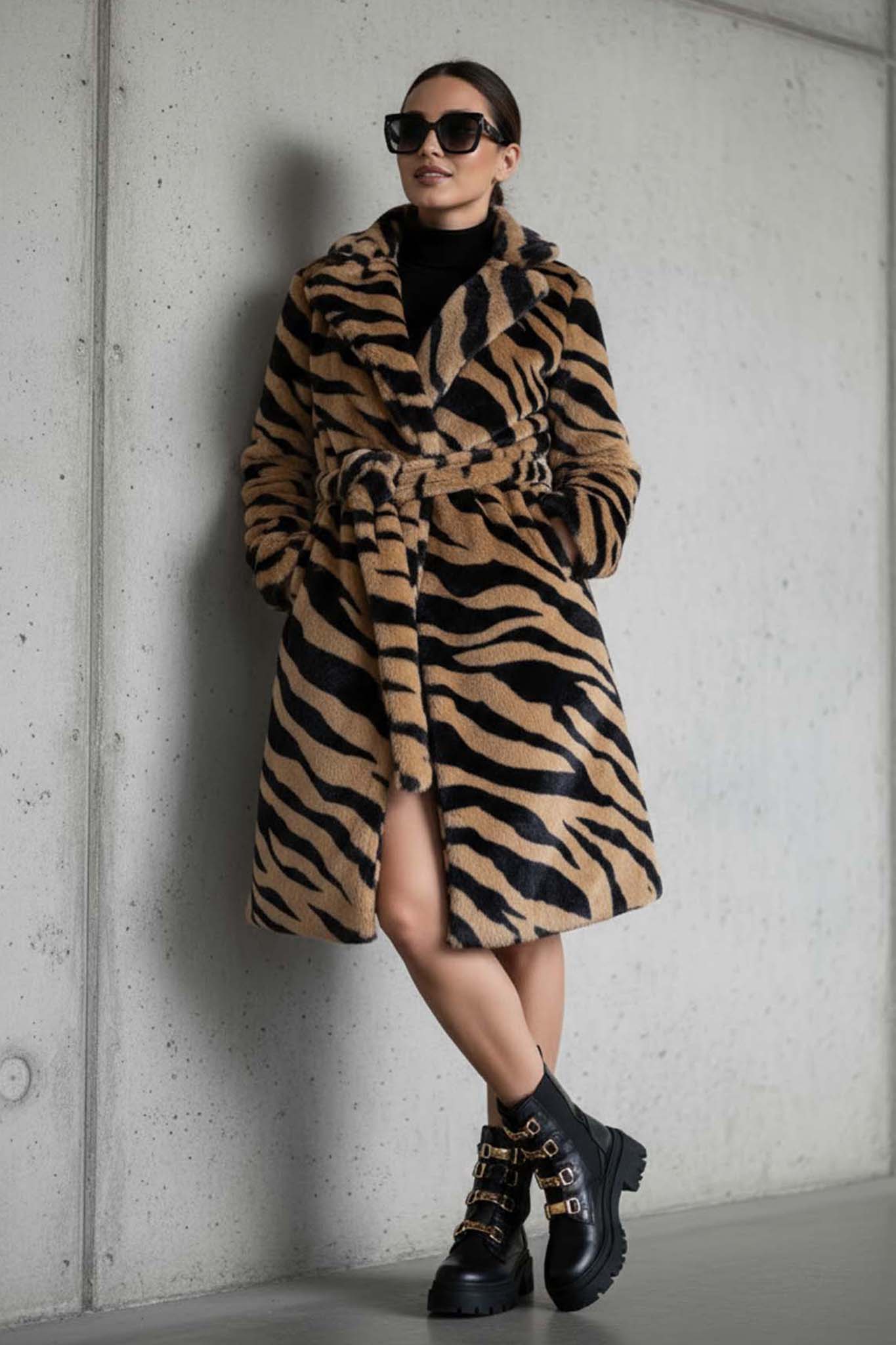 Οικολογική Γούνα με δέσιμο στη μέση. Μακριά γραμμή.