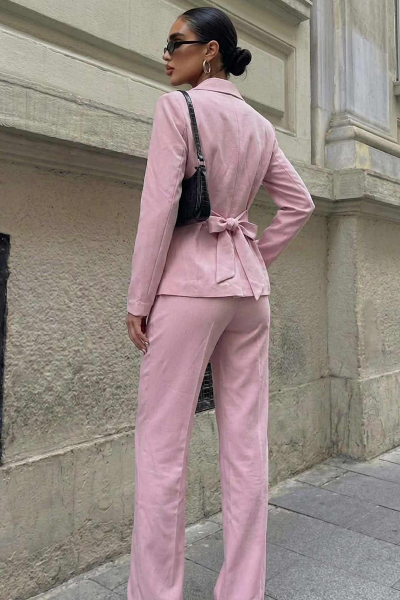 Eliteσετ σακάκι παντελόνι ριγέ ροζ