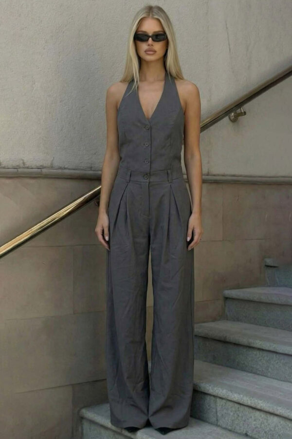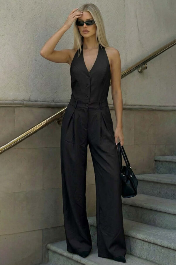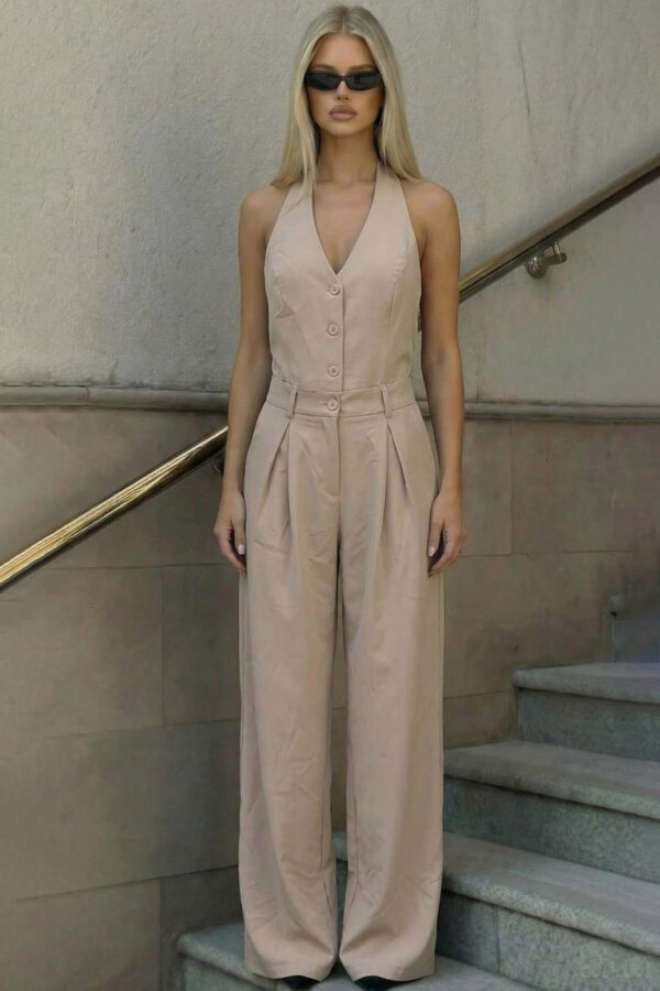 Μακρυμάνικη ολόσωμη φόρμα, η οποία αγκαλιάζει το σώμα και καταλήγει σε γραμμή καμπάνα.
