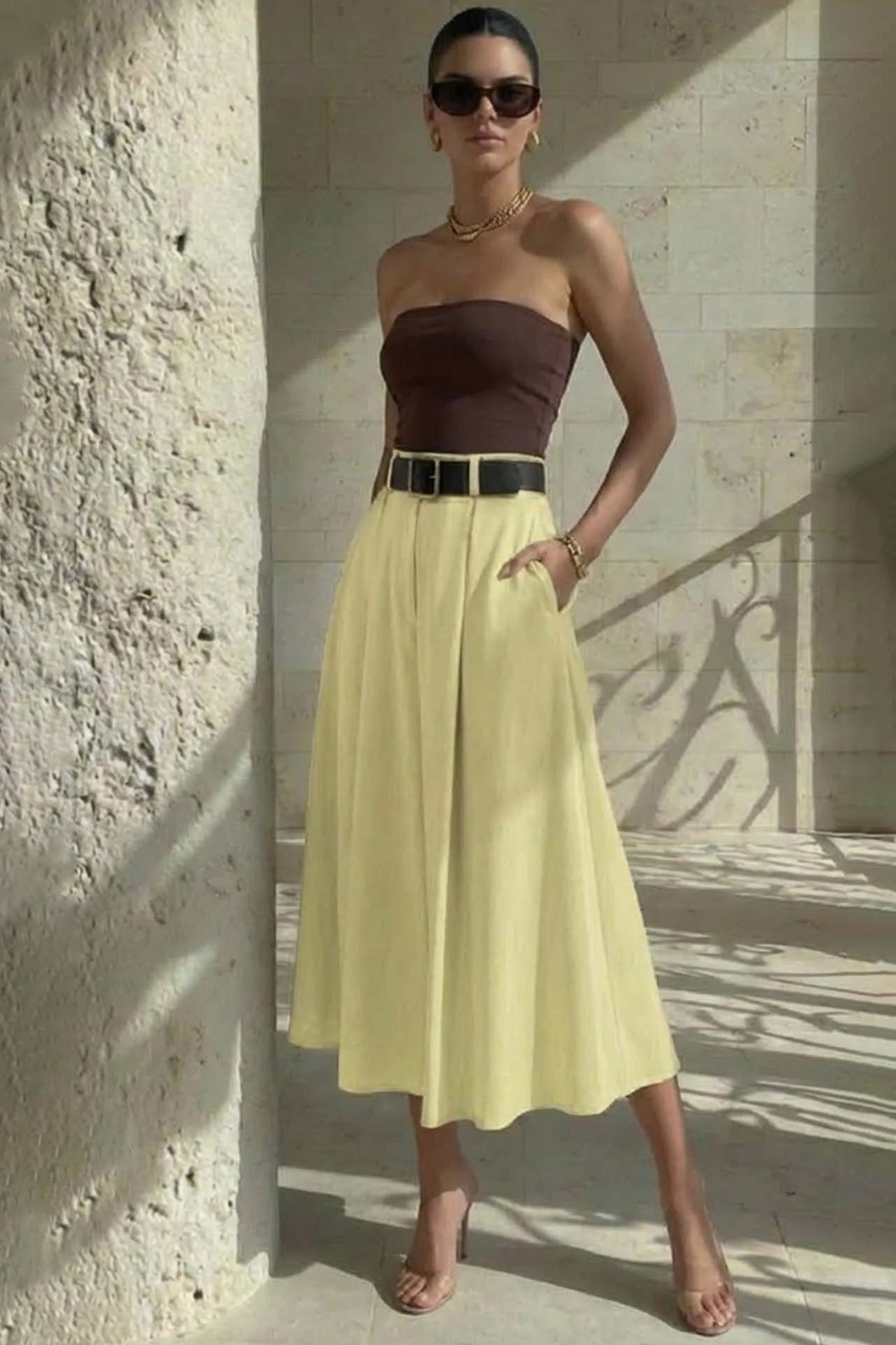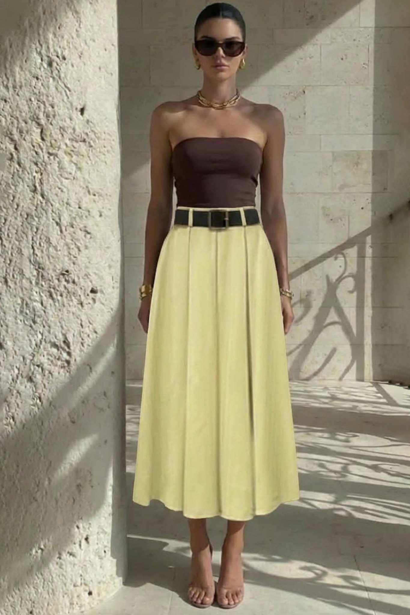 Emilieμάξι φούστα με πιέτες κίτρινο