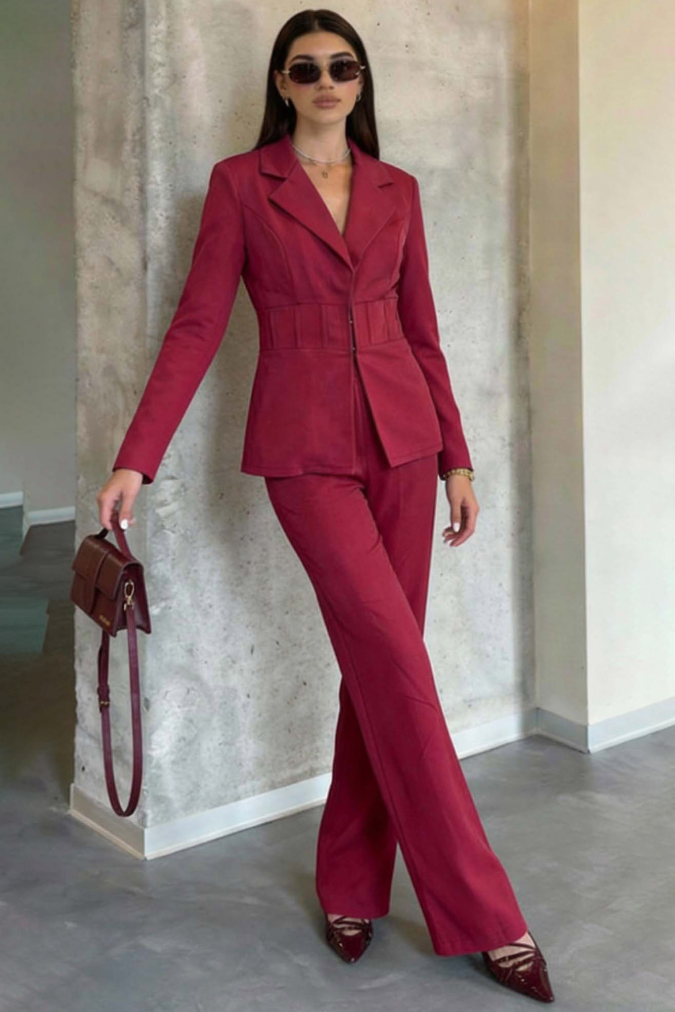 Ethraσετ σακάκι με παντελόνι μπορντό