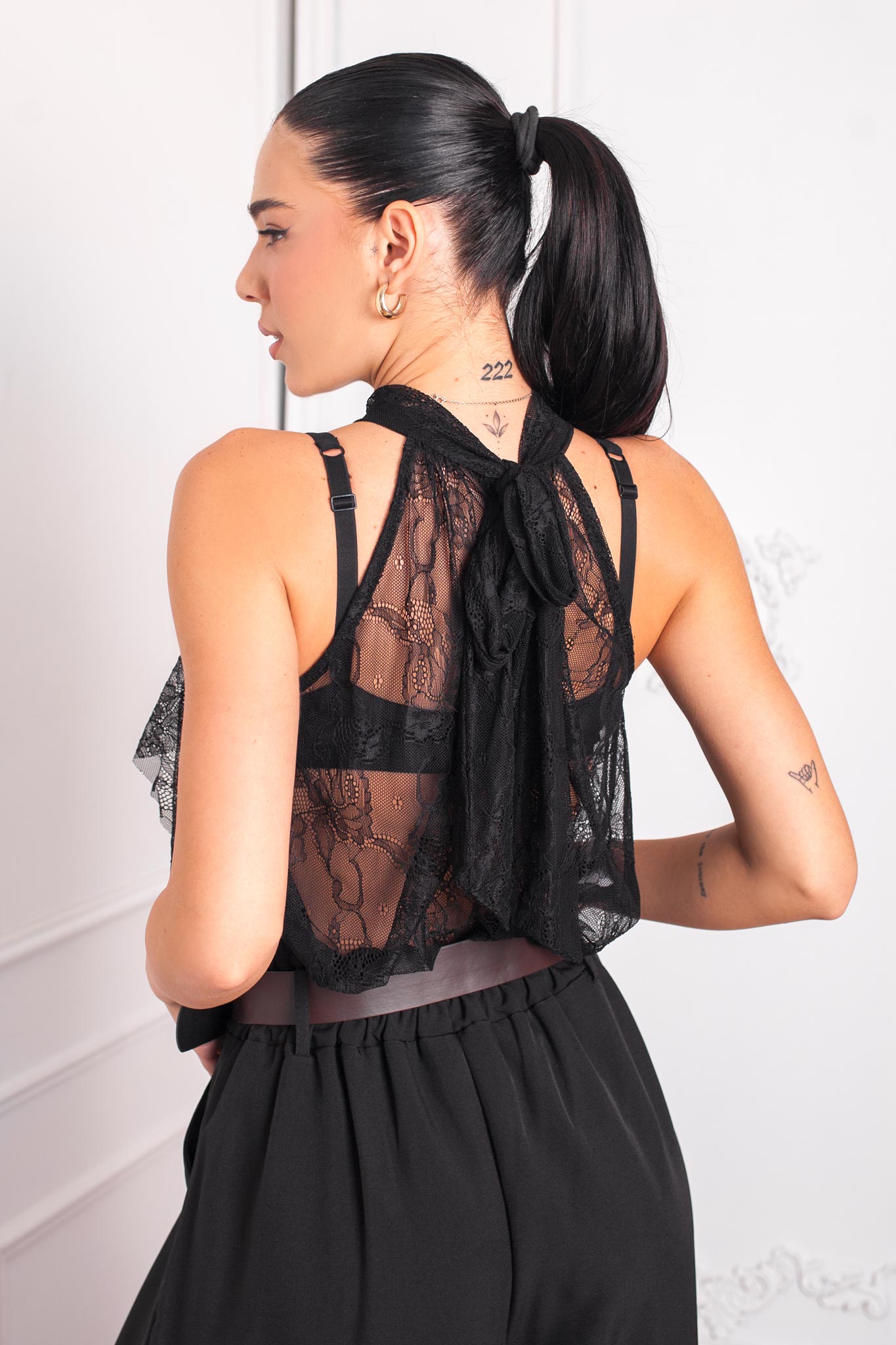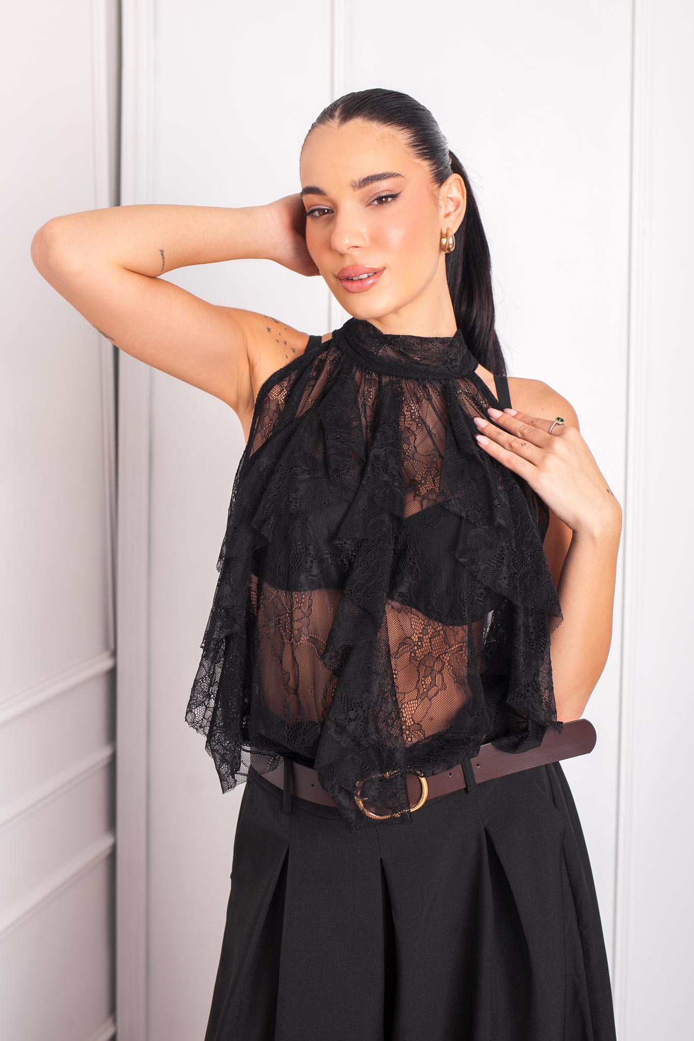 μπλούζα με δαντέλα μαύρο