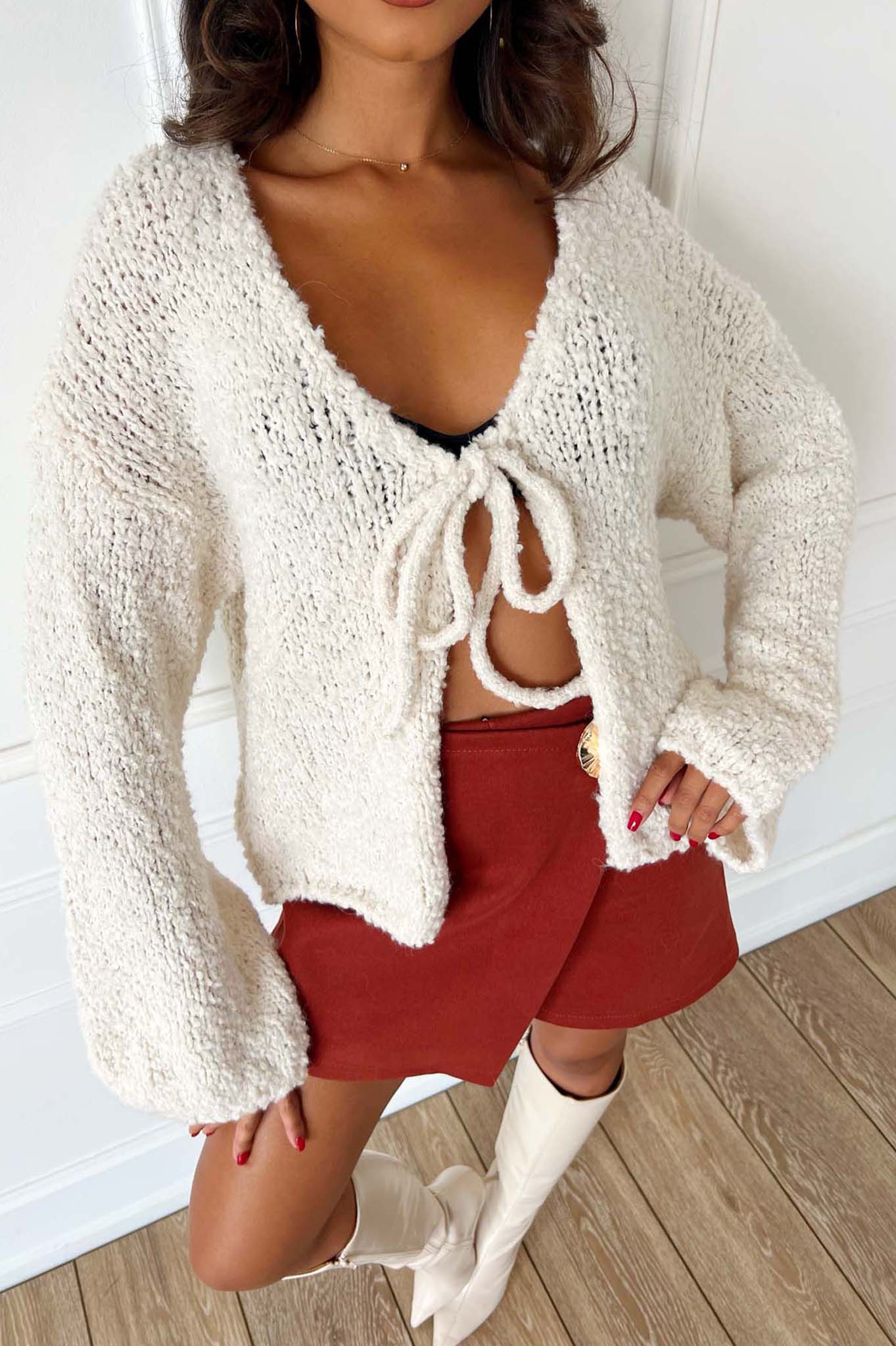 Πλεκτή ζακέτα cozy με κορδόνια μπροστά για να δένει. Μήκος 62cm, Στήθος 65cm, Mανίκι 55cm