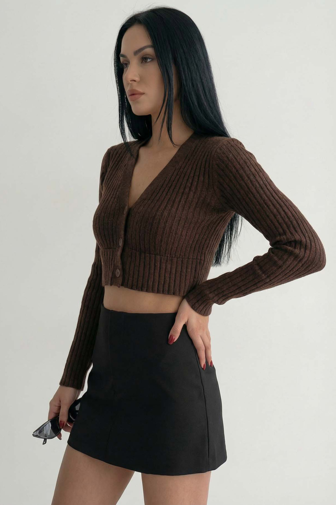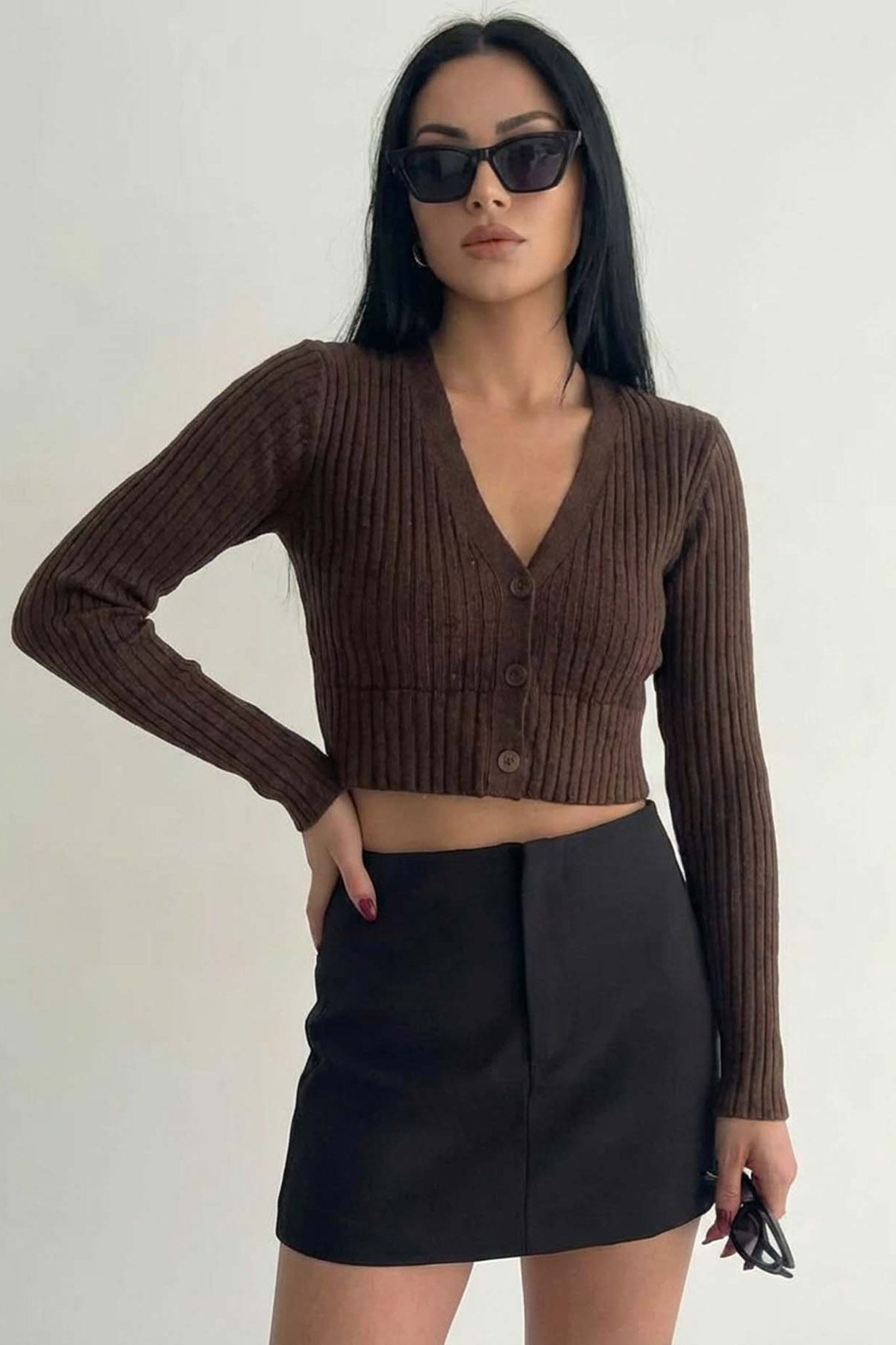Evangelineκροπ ζακέτα ριπ καφέ