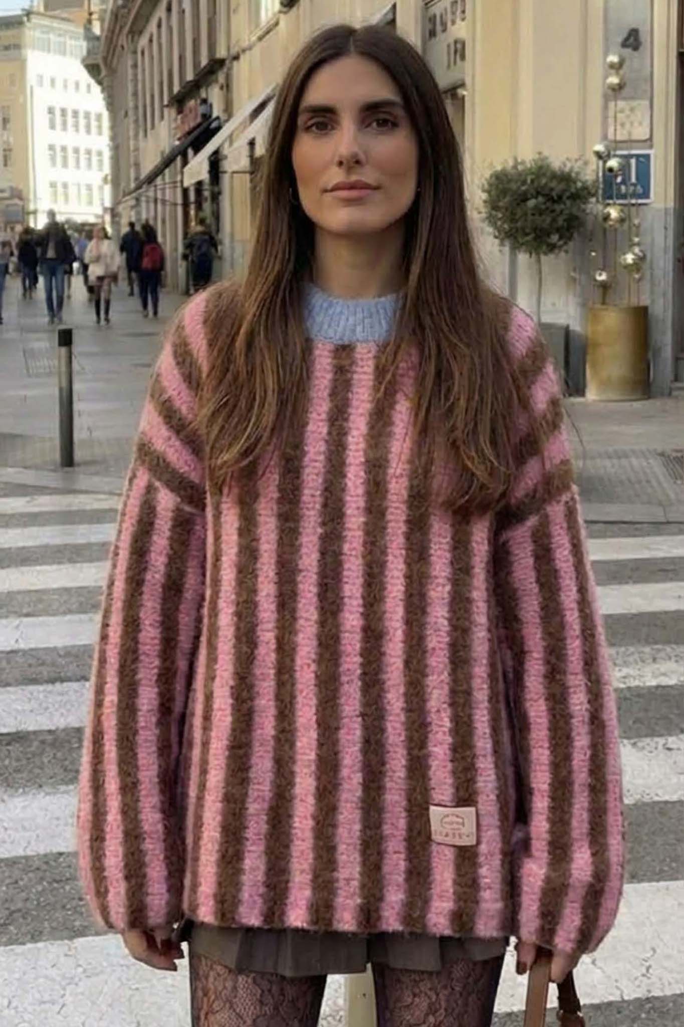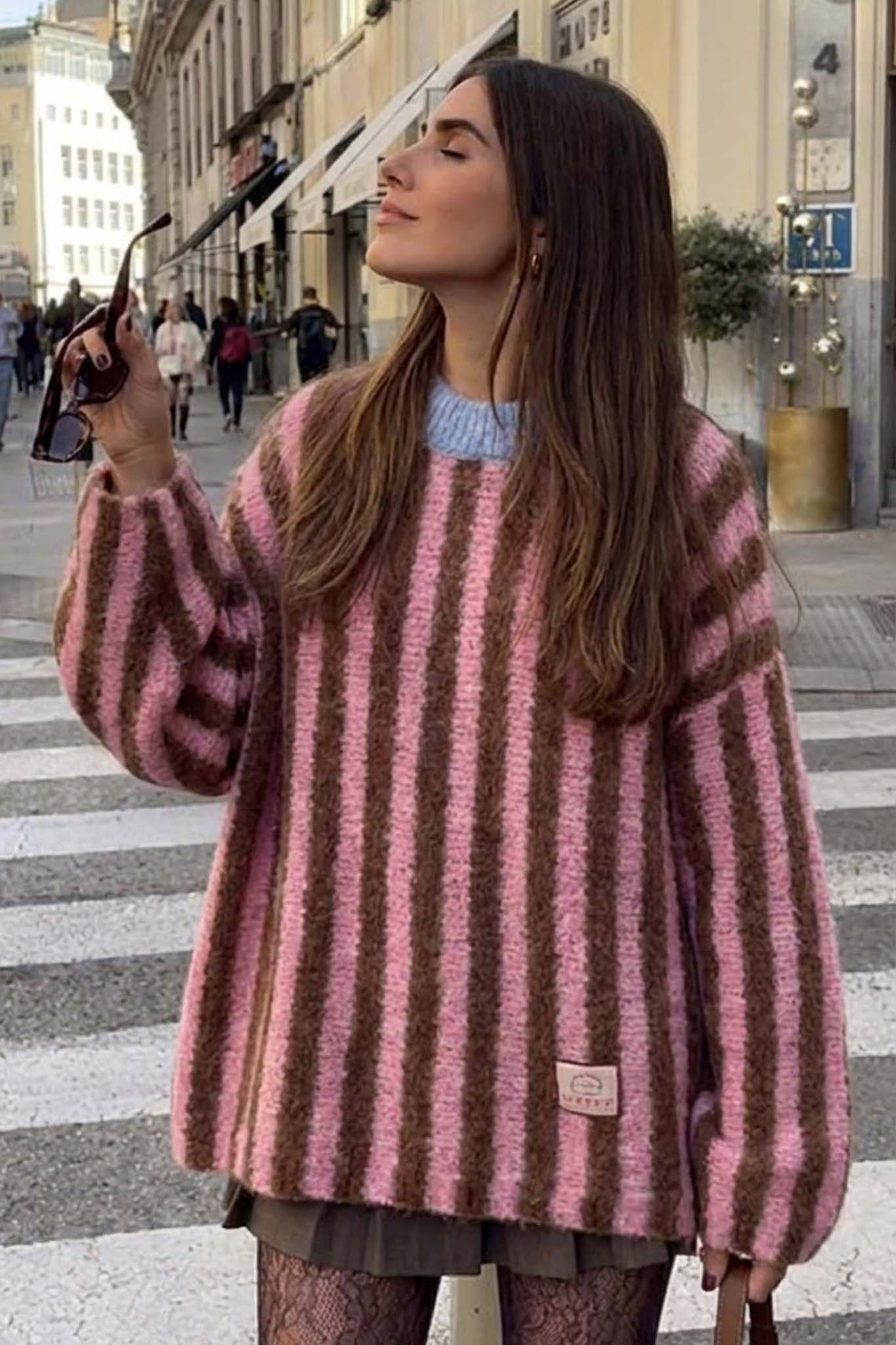 Ζεστό και άνετο oversized πλεκτό πουλόβερ με κάθετες ρίγες, ιδανικό για καθημερινές εμφανίσεις με στυλ. Διαθέτει χαλαρή γραμμή για άνετη εφαρμογή, μακριά μανίκια και στρογγυλή λαιμόκοψη, προσφέροντας cozy αίσθηση και μοντέρνα εμφάνιση. Το μαλακό του ύφασμα το καθιστά ιδανικό για τις κρύες μέρες, ενώ το ιδιαίτερο ριγέ σχέδιο προσθέτει μια παιχνιδιάρικη πινελιά στο outfit σας.