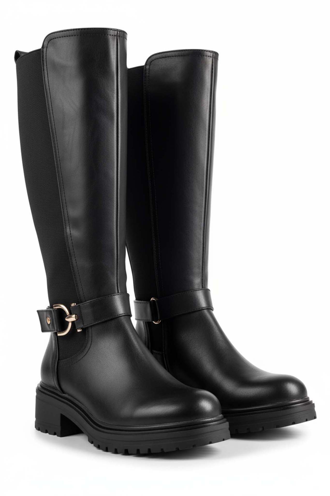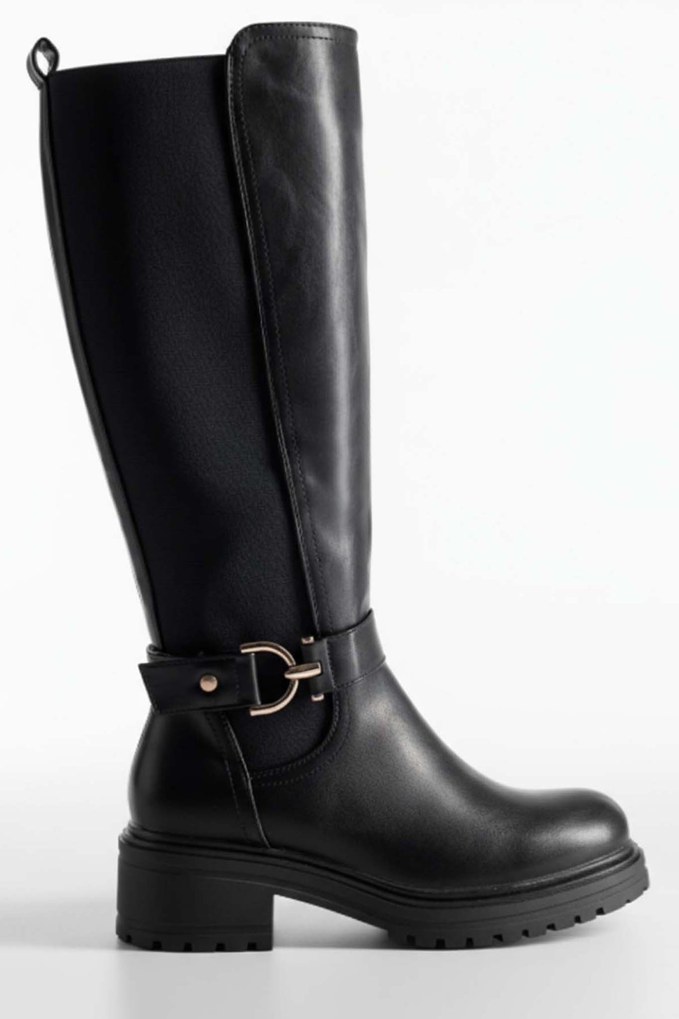 Μπότες μαύρες με ασημί λεπτομέρειες με πολύ χαμηλό ύψος τακουνιού.
