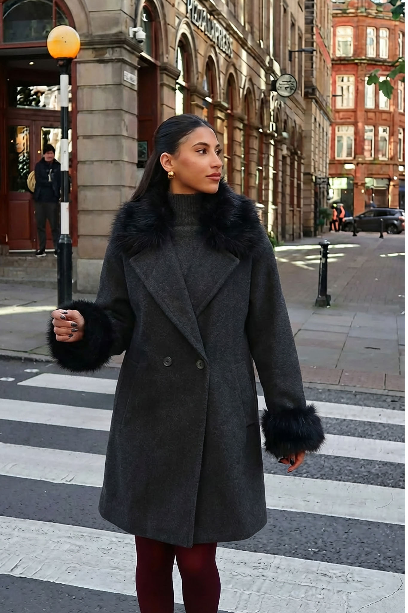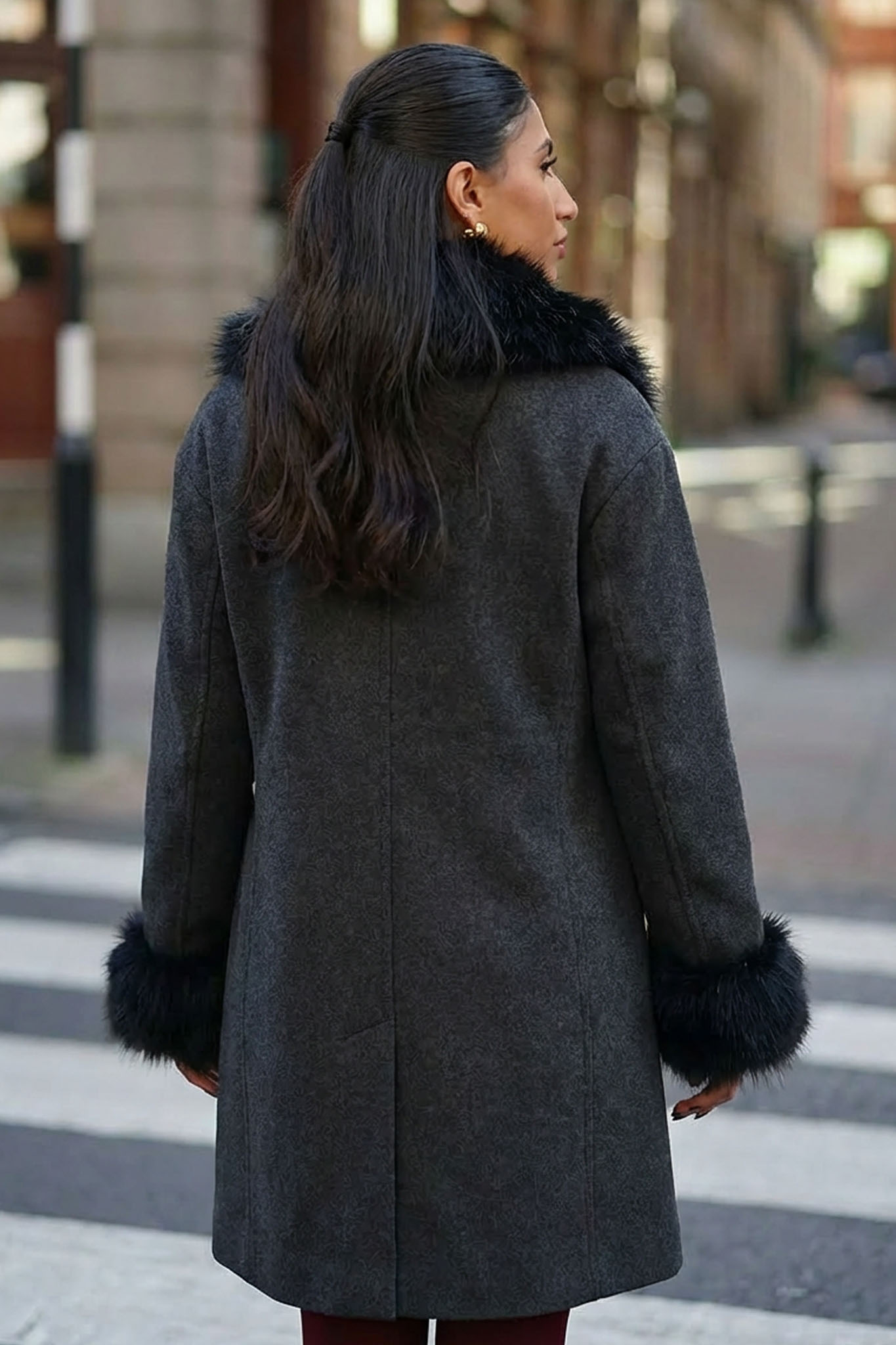 Παλτό με οικολογική γούνα στον γιακά και στα μανίκια. Προσφέρει elegant αποτέλεσμα. Ιδανική επιλογή για καθημερινές εμφανίσεις.