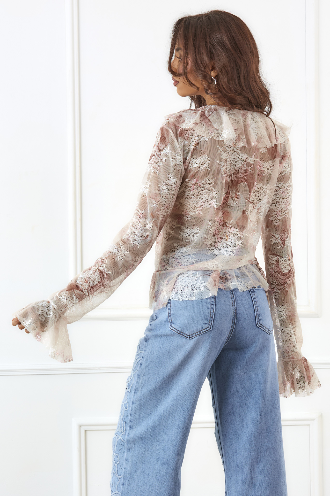 Δαντελένια μπλούζα με βολάν. Ιδανικό για εμφανίσεις από το πρωί έως το βράδυ.