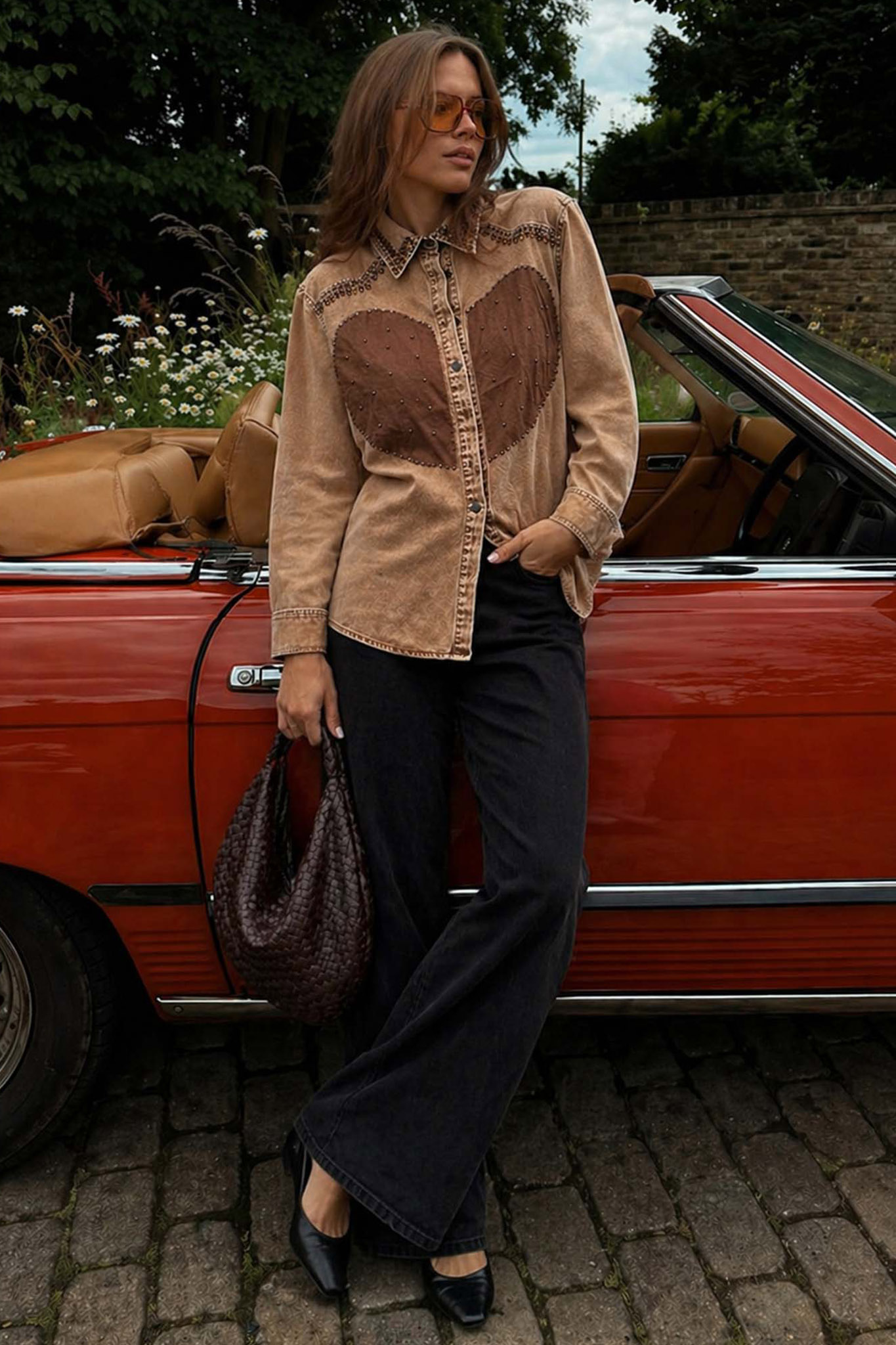 Fortuitoπουκάμισο με καρδιά και διακοσμητικά τρουκς καφέ