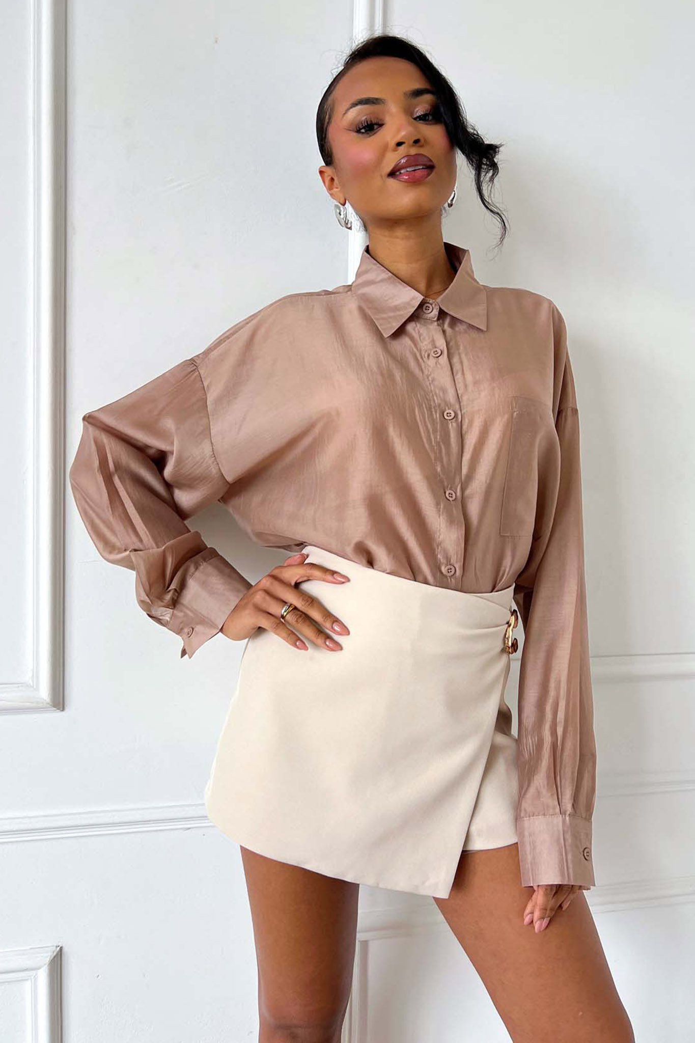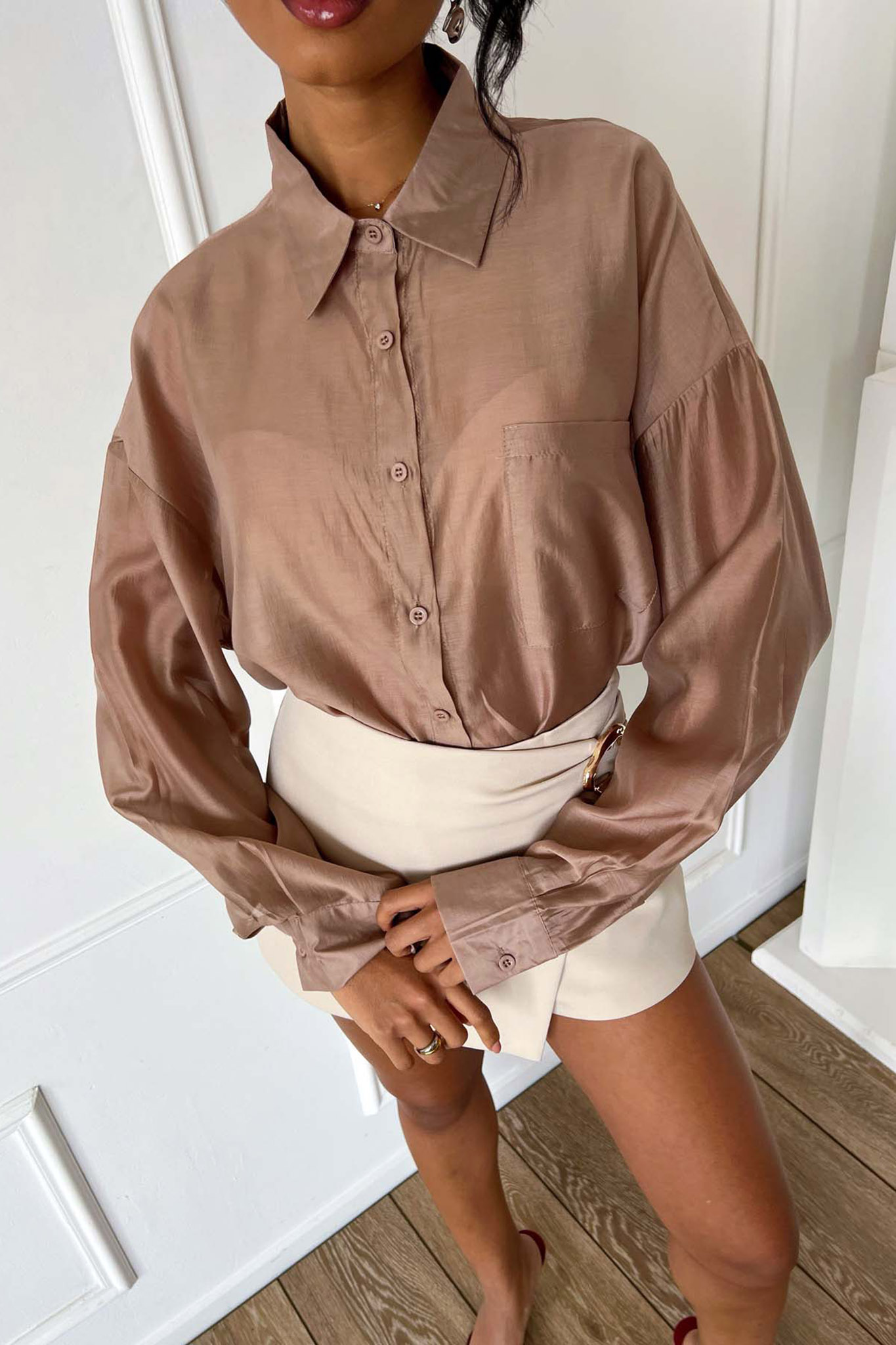 Γυναικείο Σατινέ Πουκάμισο με Oversized Γραμμή & Ημιδιάφανη Υφή. Oversized/άνετη γραμμή (relaxed fit) που επιτρέπει ελευθερία κινήσεων και είναι ιδανική για layering ή για να φορεθεί μέσα από ψηλόμεσα παντελόνια.