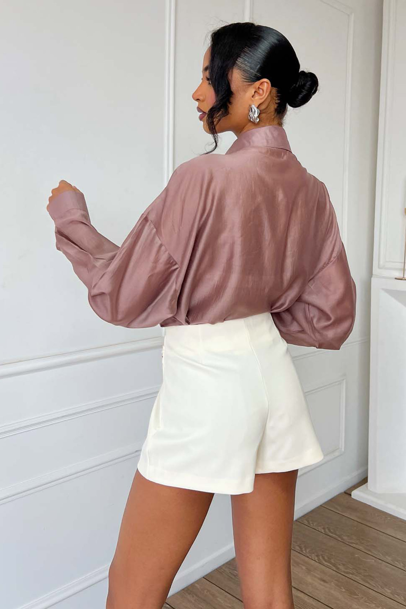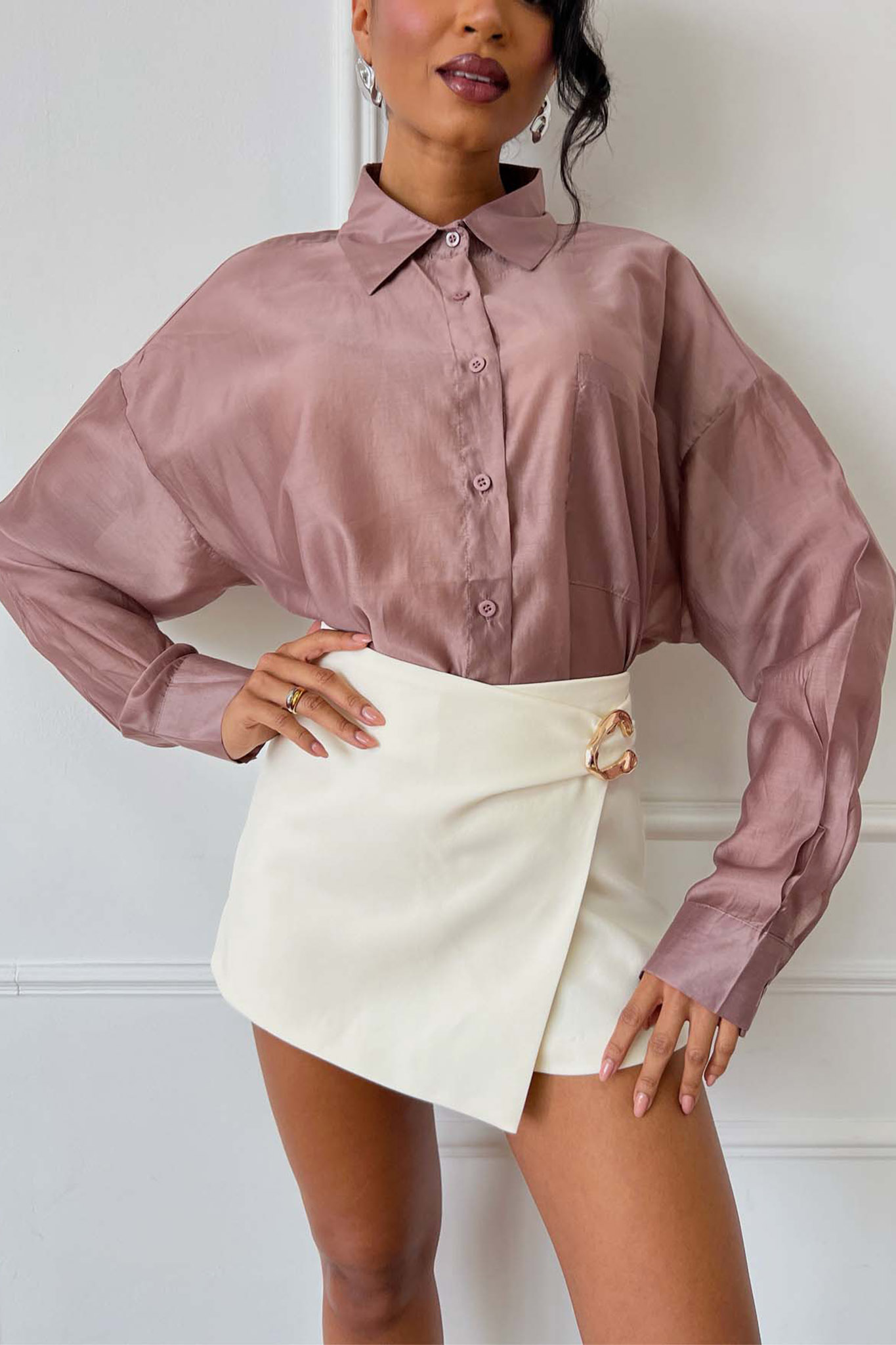 Γυναικείο Σατινέ Πουκάμισο με Oversized Γραμμή & Ημιδιάφανη Υφή. Oversized/άνετη γραμμή (relaxed fit) που επιτρέπει ελευθερία κινήσεων και είναι ιδανική για layering ή για να φορεθεί μέσα από ψηλόμεσα παντελόνια.