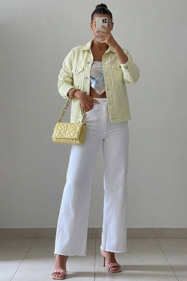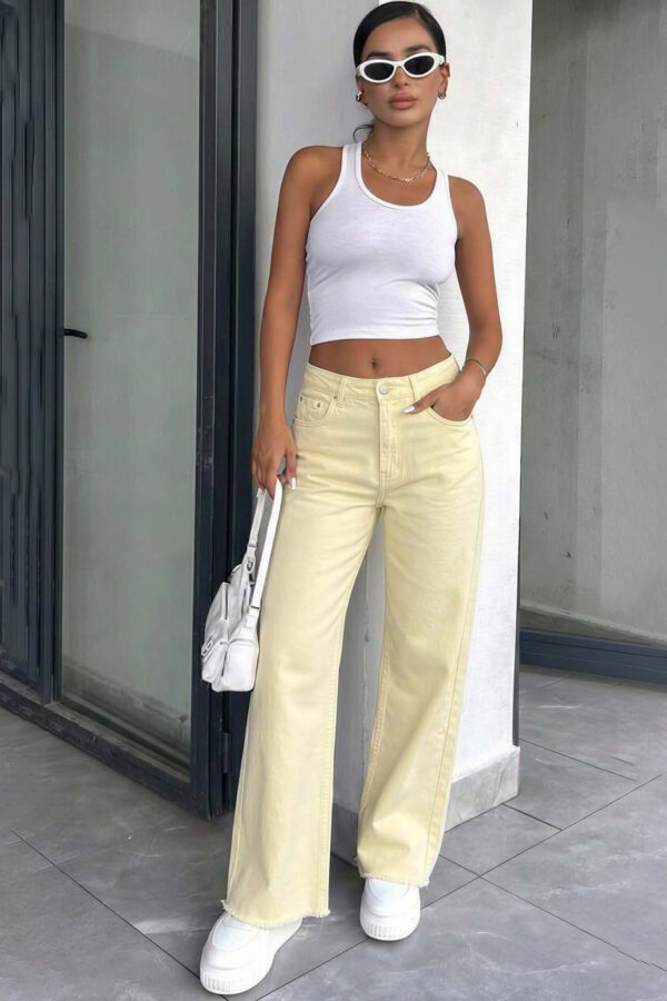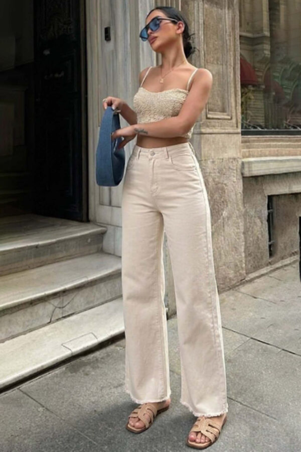 Παντελόνι ελαστικό σε ίσια γραμμή με λάστιχο στη μέση και τσέπες. Μήκος 104cm μέση 35cm