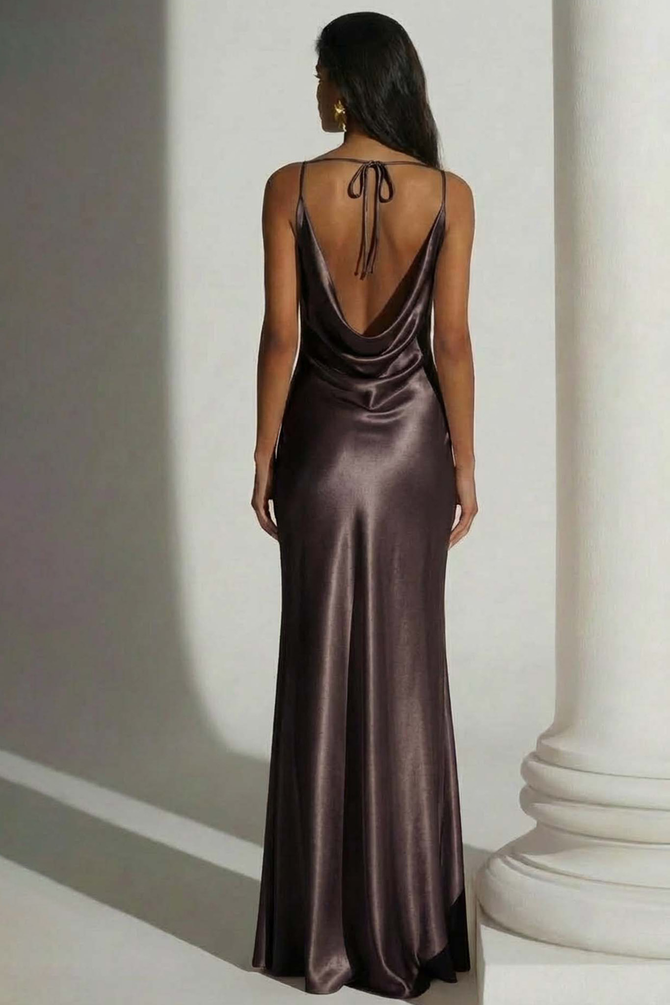 Αναδείξτε την κομψότητα και τη θηλυκότητά σας με αυτό το εντυπωσιακό φόρεμα slip. Από λείο, σατέν ύφασμα που αγκαλιάζει απαλά τη σιλουέτα, διαθέτει κομψό κολάρο cowl (ντραπέ) και λεπτές τιράντες. Το μακρύ μήκος του προσδίδει μια αίσθηση πολυτέλειας, ιδανικό για επίσημες εκδηλώσεις, κοκτέιλ πάρτι ή βραδινές εξόδους.