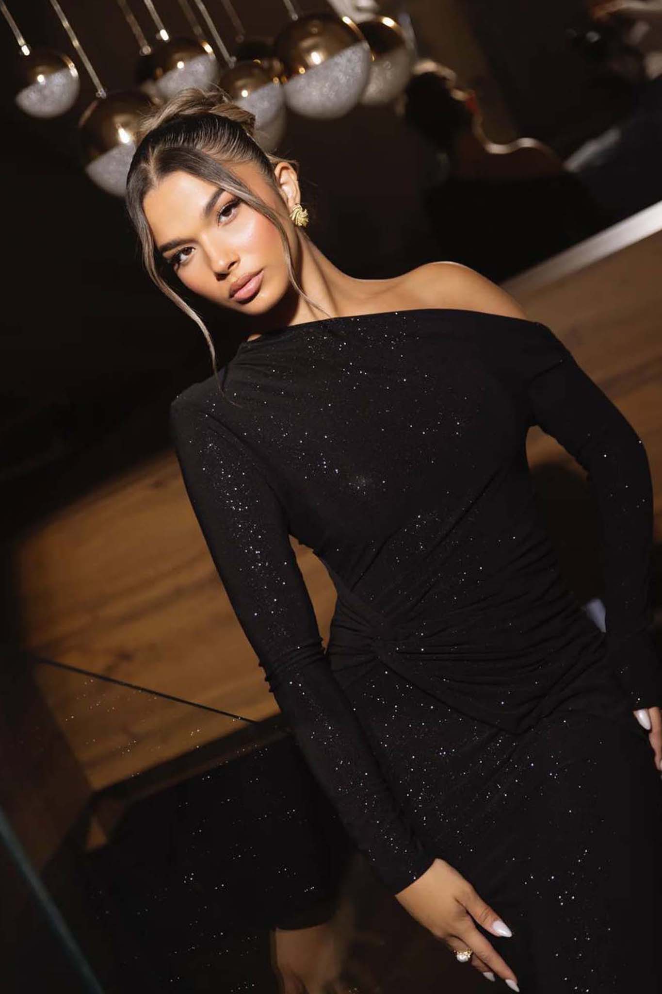 Glowμάξι φόρεμα με glitter μαύρο