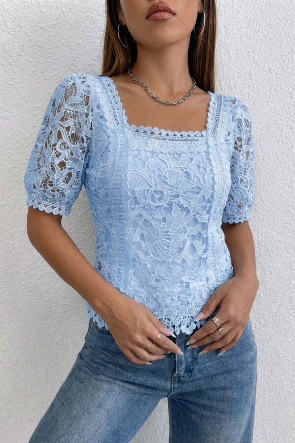 Μπλούζα σατέν με δαντέλα. Ντραπέ σχέδιο στο στήθος. Προσφέρει ένα κομψό και αριστοκρατικό αποτέλεσμα. Ιδανικό για καθημερινές εμφανίσεις. Μήκος 48-65cm, στήθος 80cm.