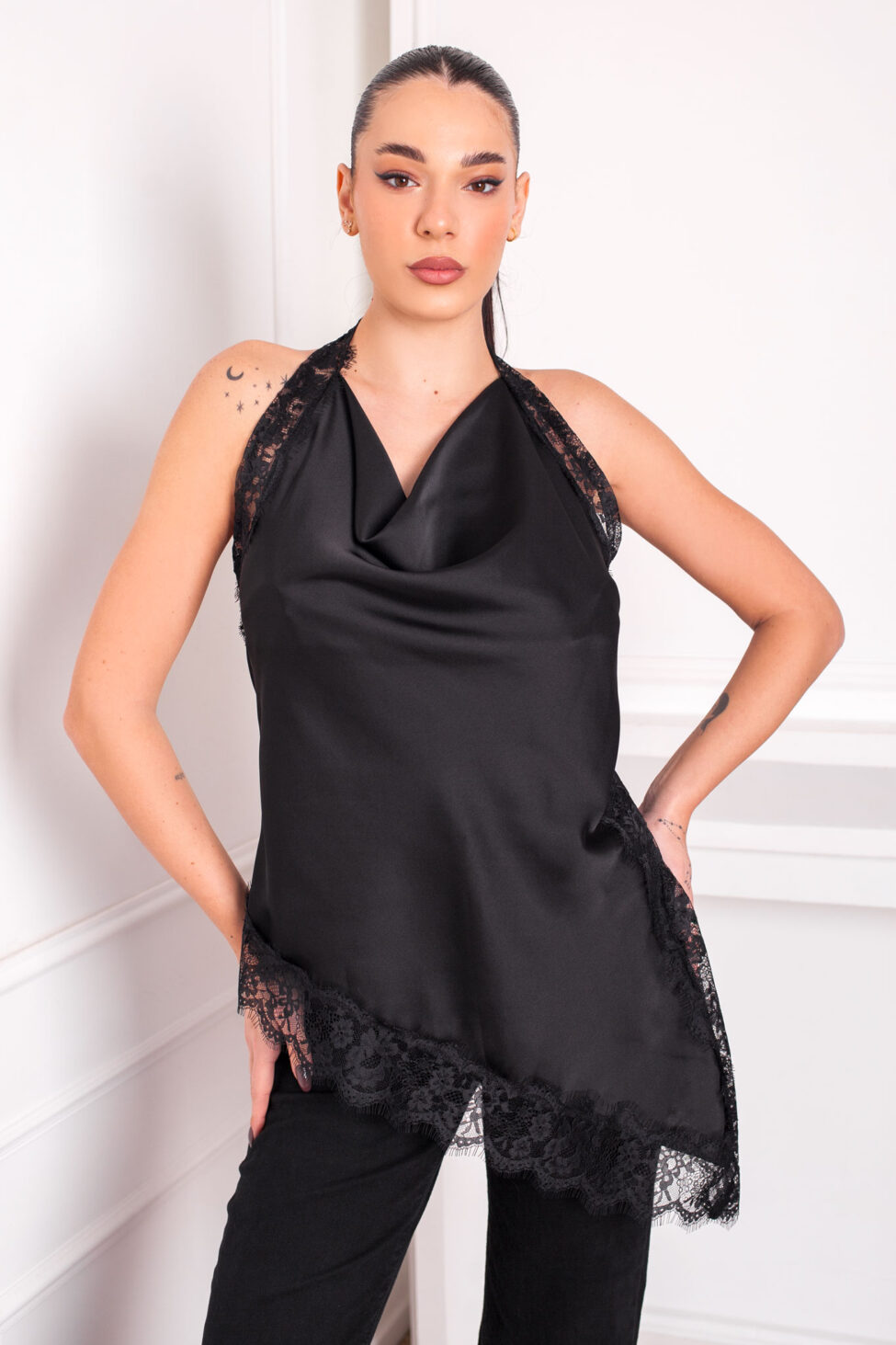 Gooberσατεν μπλούζα με δαντέλα μαύρο