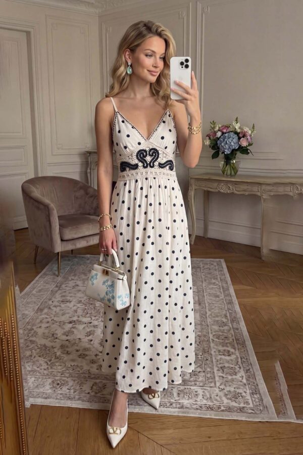 Μακρύ φόρεμα cut out, με μακριά μανίκια, και στρογγυλό ντεκολτέ. Μήκος 162cm στήθος 35cm μανϊκι 60cm