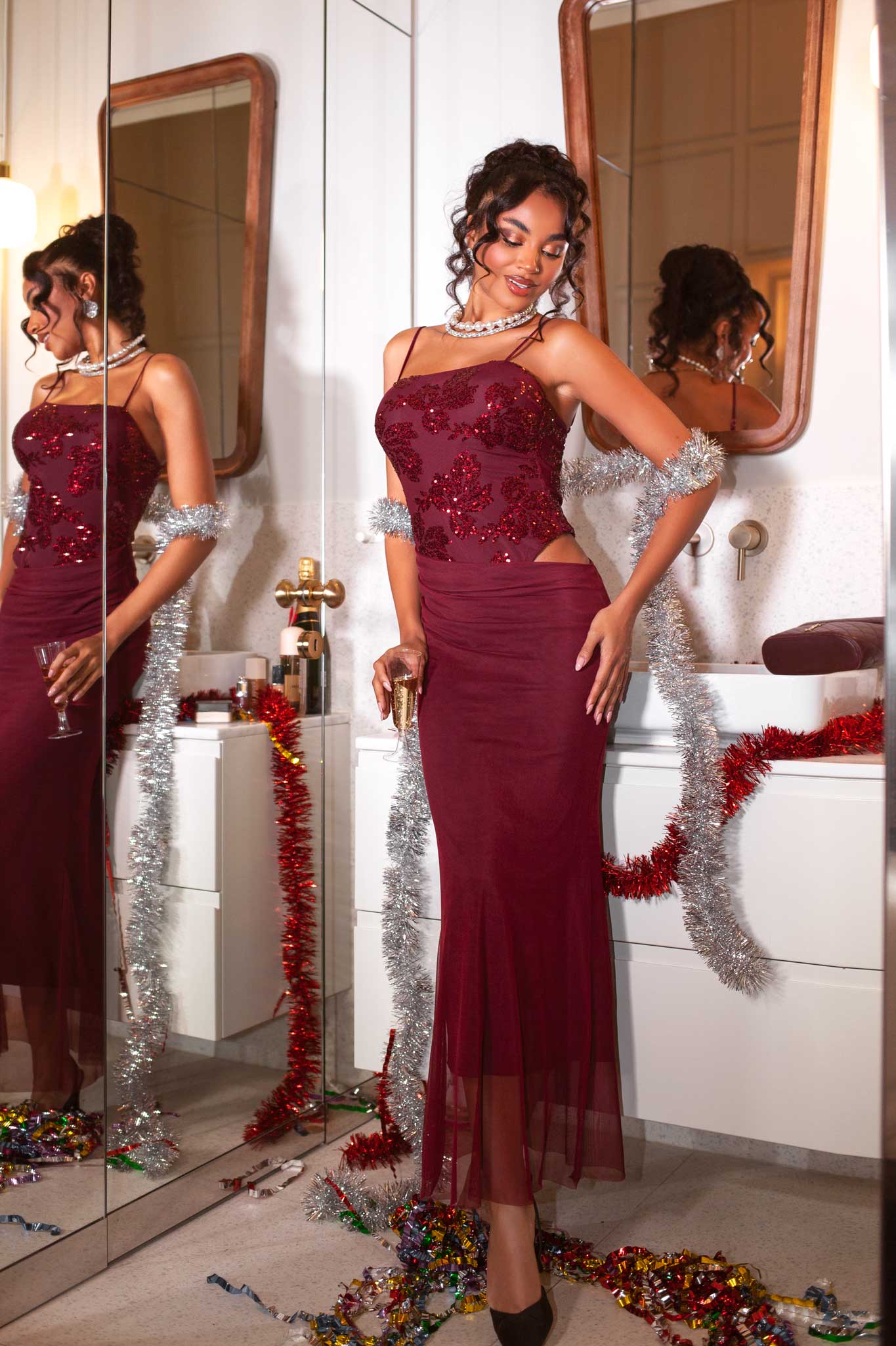 Grenadeμάξι φόρεμα με παγιέτα μπορντό
