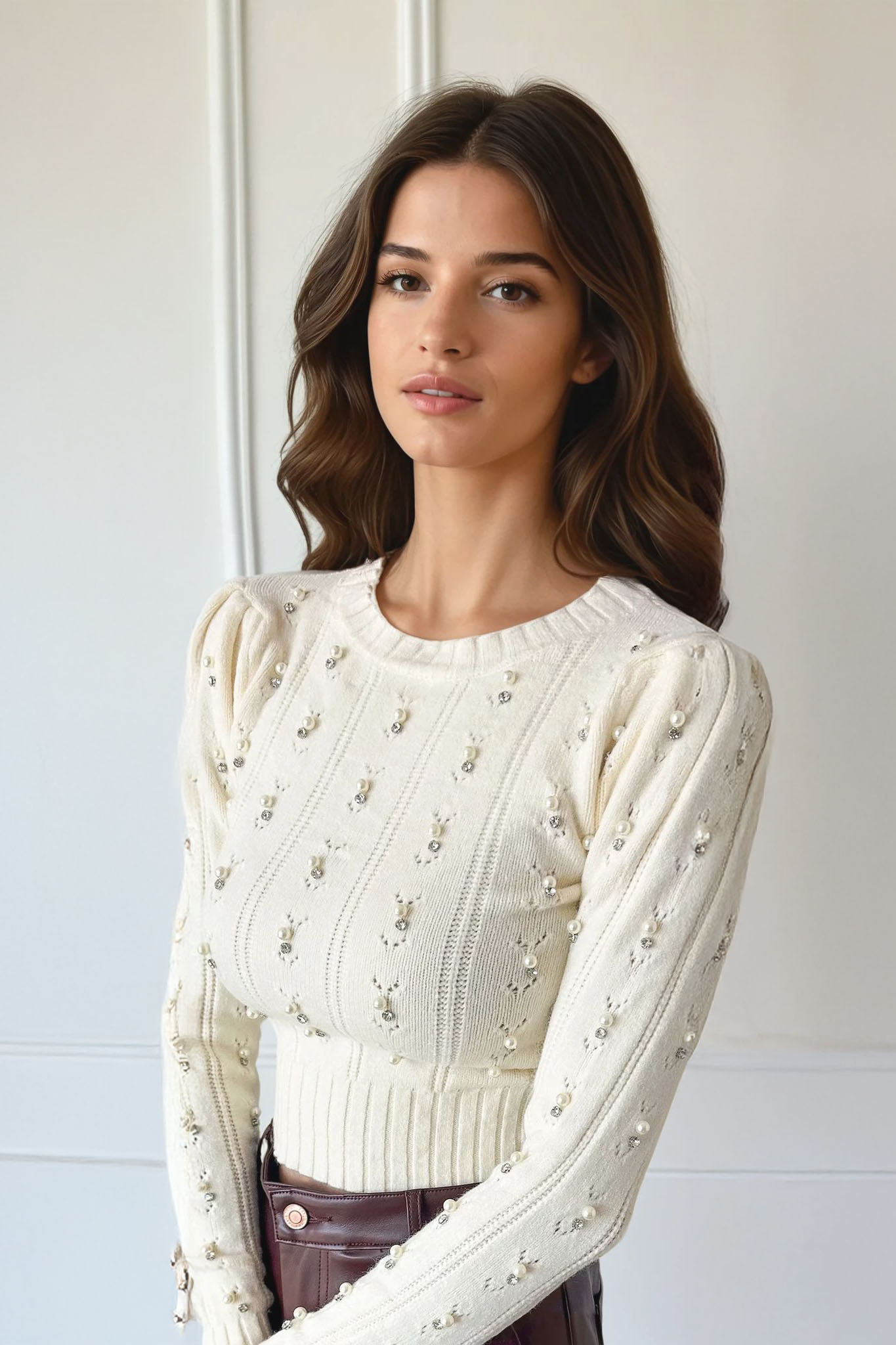 Gwynethπλεκτή μπλούζα με strass και πέρλες εκρού
