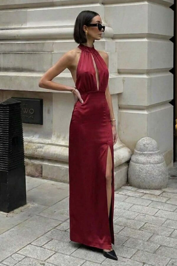 Μίντι φόρεμα με strass. Με βολάν στις τιράντες, τετράγωνο ντεκολτέ και σκίισιμο στο κάτω μέρος. Μήκος 122cm στήθος 37cm
