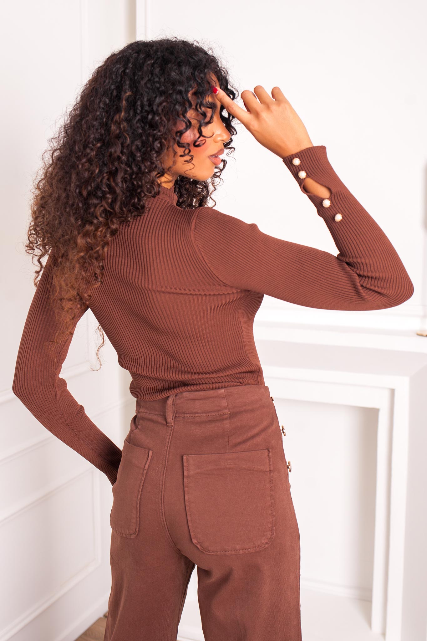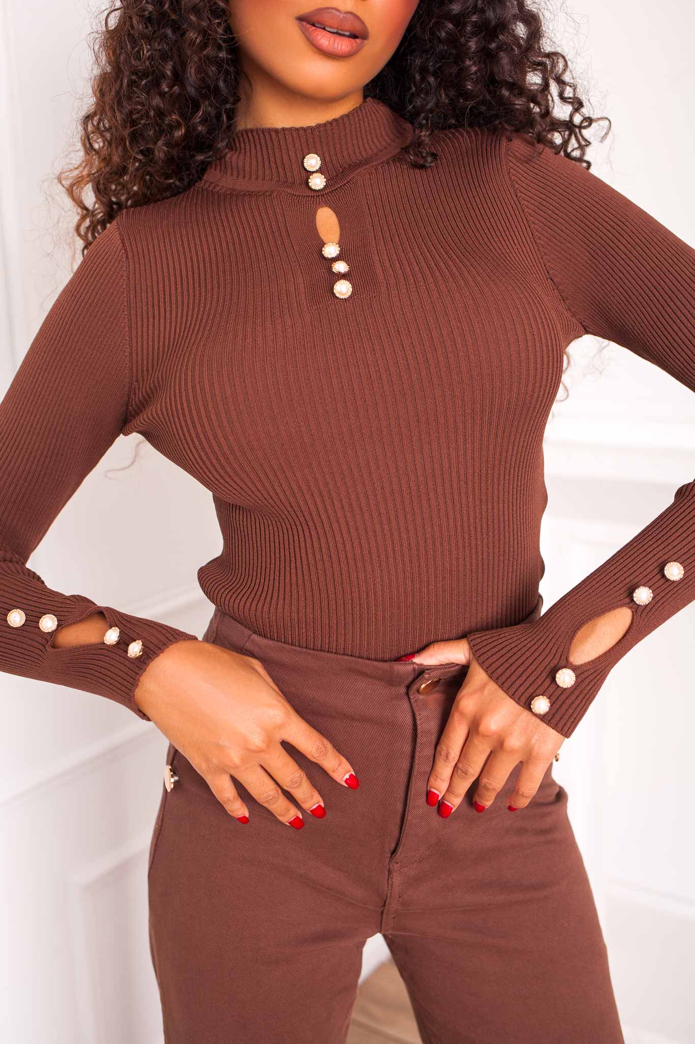 HaloΜακρυμάνικη Πλεκτή Μπλούζα καφέ