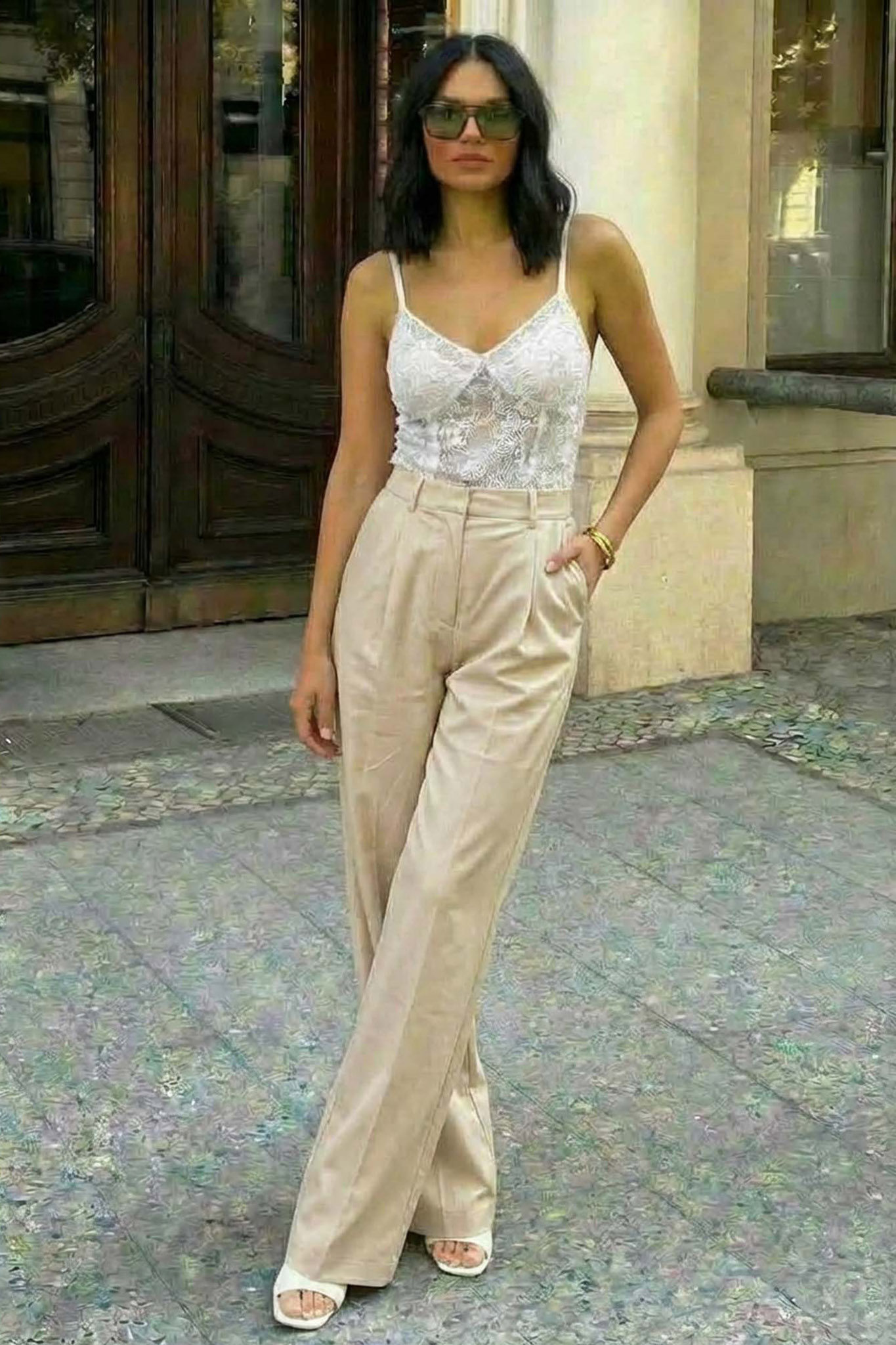 Harmonyπαντελόνι δερματίνης εκρού