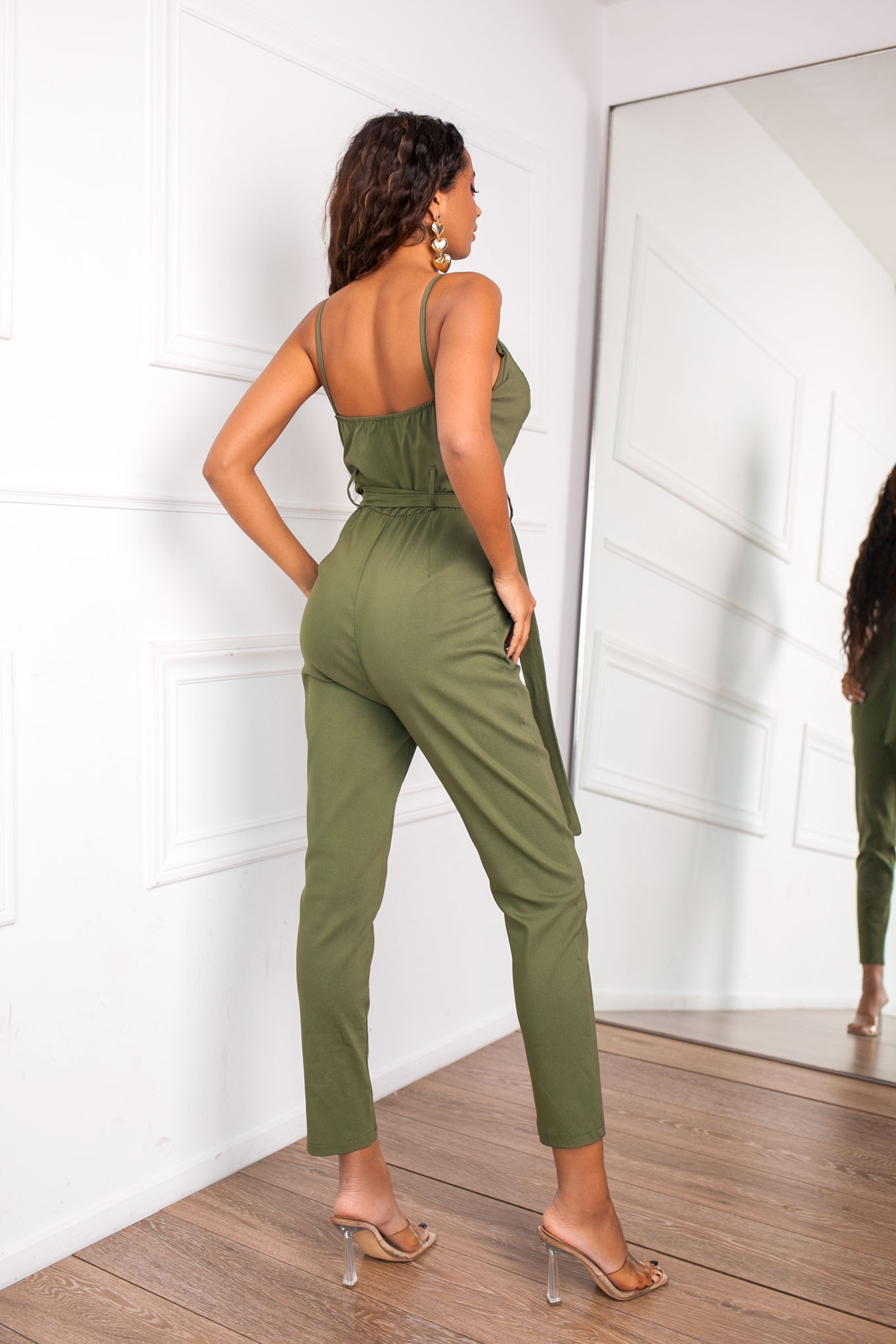 Η ολόσωμη φόρμα αυτή αποπνέει θηλυκότητα και κομψότητα, με λεπτά τιραντάκια που δημιουργούν ένα κρουαζέ ντεκολτέ, αναδεικνύοντας τον λαιμό και προσθέτοντας μια αίσθηση ανεμελιάς στο σύνολο. Η ζώνη στη μέση αναδεικνύει το σημείο αυτό του σώματος, δίνοντας έμφαση στη θηλυκή σας σιλουέτα. Ο σχεδιασμός με τις τσέπες προσθέτει άνεση και πρακτικότητα, ενώ τα λεπτά τιραντάκια προσδίδουν διακριτικότητα και ρομαντισμό. Ιδανική για καθημερινές εξορμήσεις, αυτή η ολόσωμη φόρμα θα σας προσφέρει μια ξεχωριστή εμφάνιση που συνδυάζει στυλ και άνεση.
