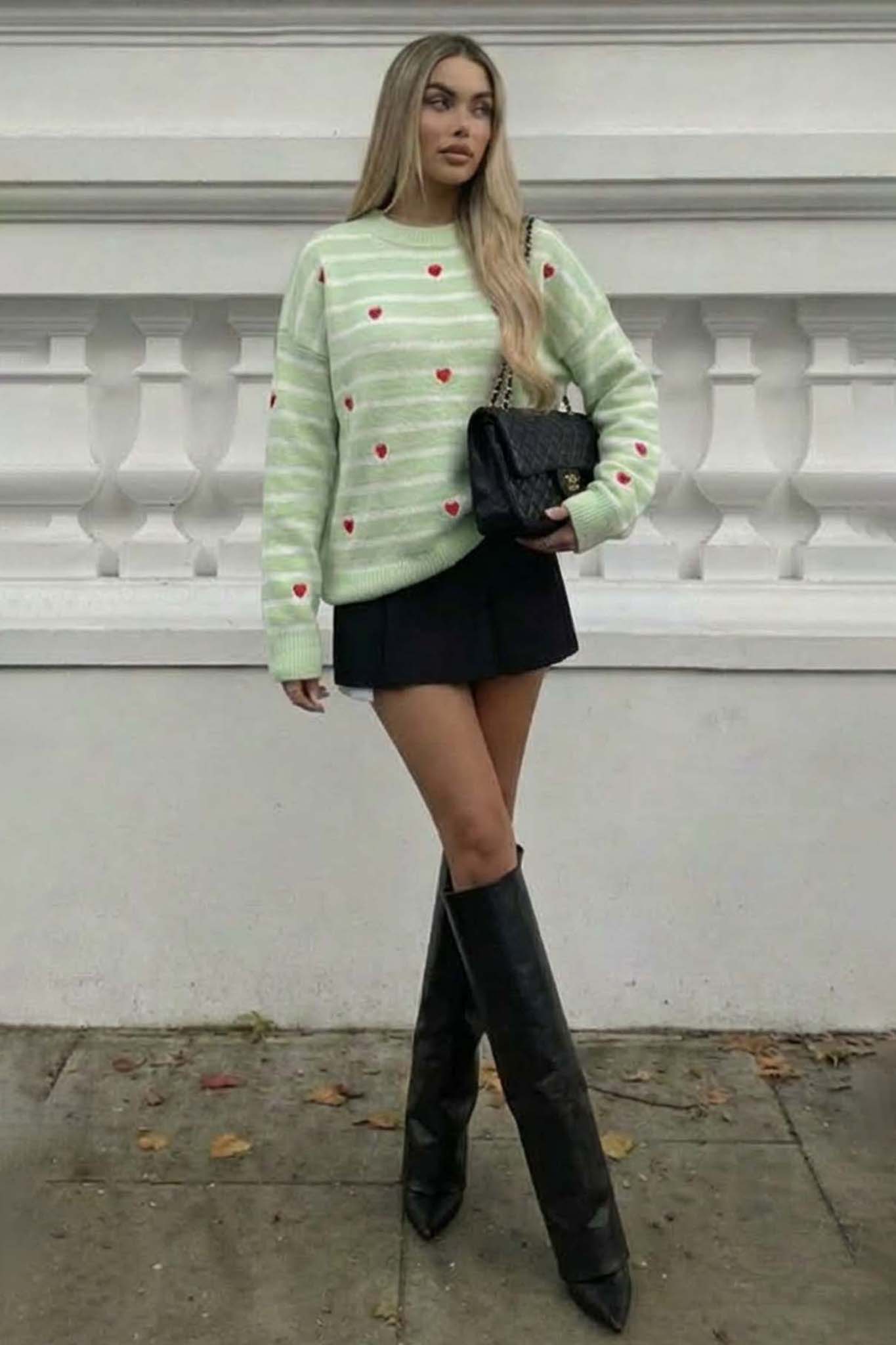 Ανανεώστε το στυλ σας με αυτό το πλεκτό πουλόβερ με λευκές οριζόντιες ρίγες και μικρά κόκκινα καρδιές που προσθέτουν παιχνιδιάρικη διάθεση. Διαθέτει στρογγυλή λαιμόκοψη, μακριά μανίκια και άνετη γραμμή για καθημερινή χρήση. Το μαλακό του ύφασμα προσφέρει ζεστασιά και άνεση, ενώ το ρομαντικό σχέδιο το καθιστά ιδανικό για casual εμφανίσεις ή cozy στιγμές. Συνδυάζεται εύκολα με τζιν ή φούστες για ένα χαλαρό αλλά κομψό look.