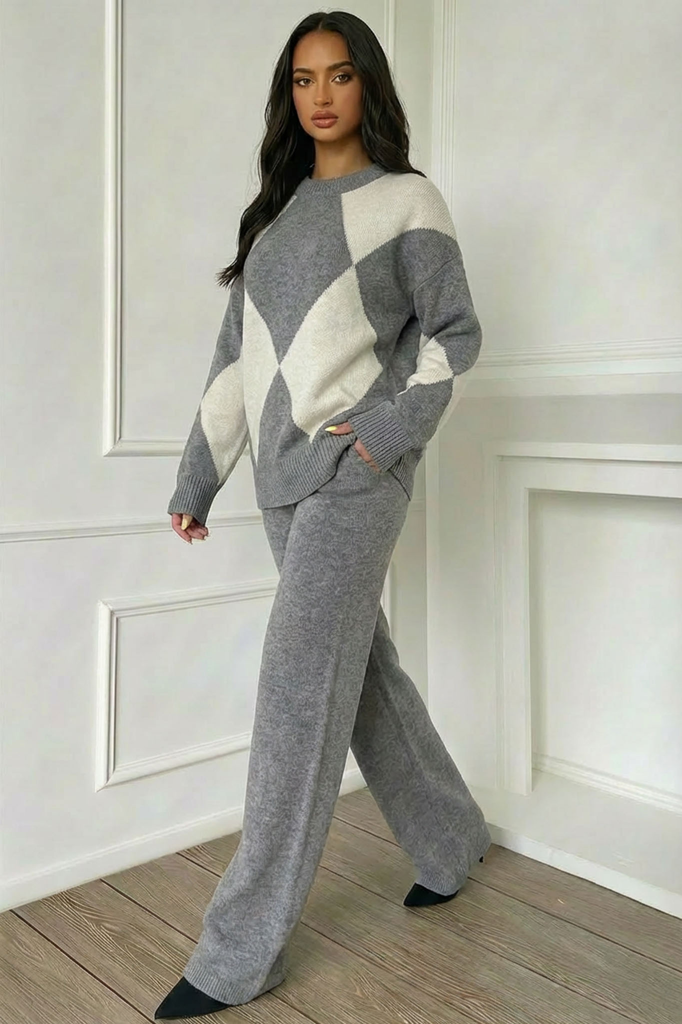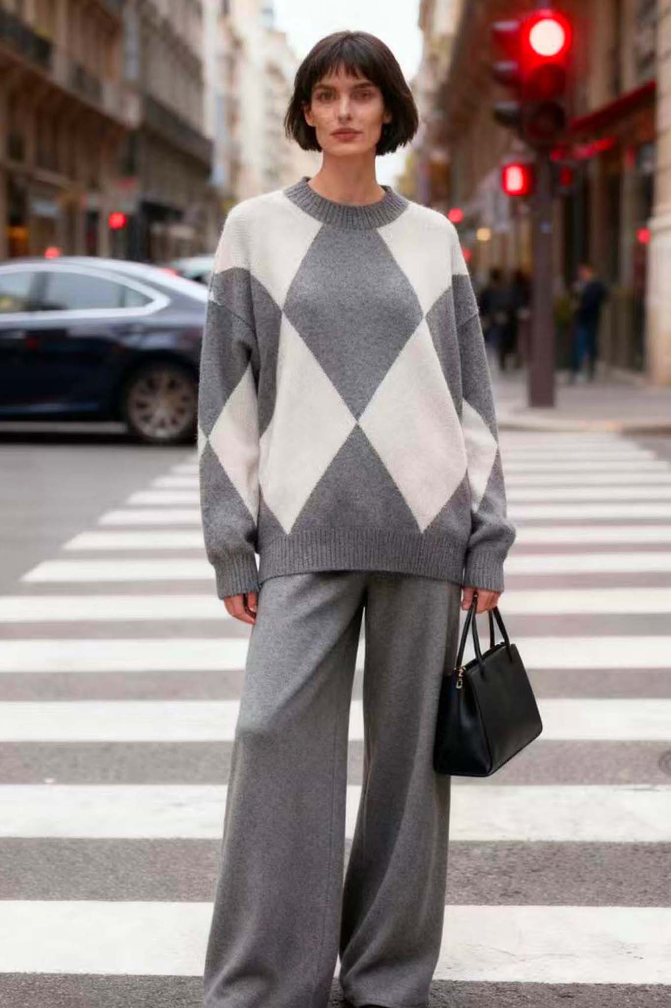 Σετ πλεκτό που αποτελείται από φόρμα και μπλούζα σε oversized γραμμή. Προσφέρει ένα cozy,κομψό αποτέλεσμα. Στα απόλυτα χρώματα του χειμώνα. Πλέξη που δεν προκαλεί δυσφορία και προστατευεί από το κρύο. Ιδανικό για καθημερινές εμφανίσεις.