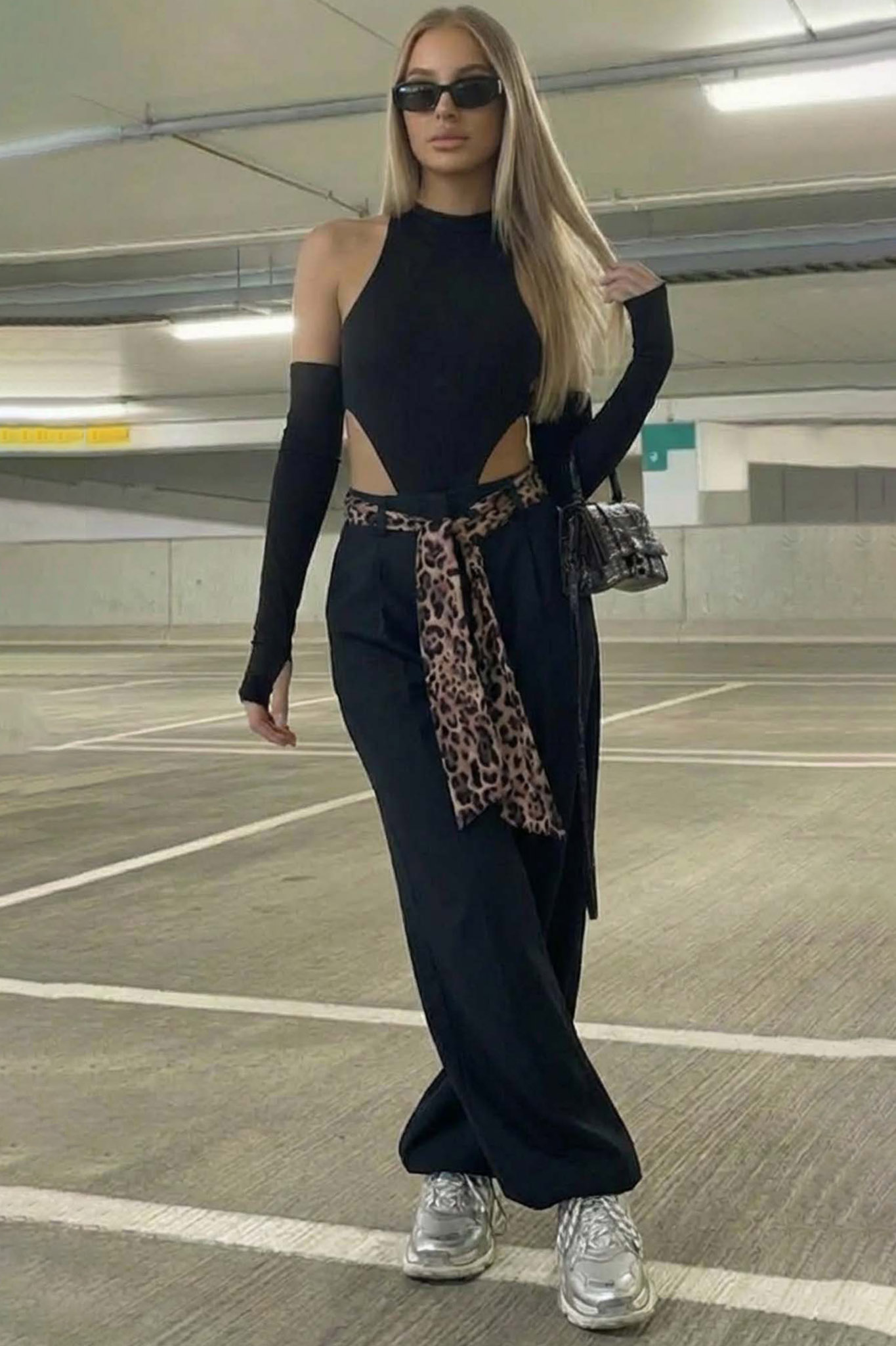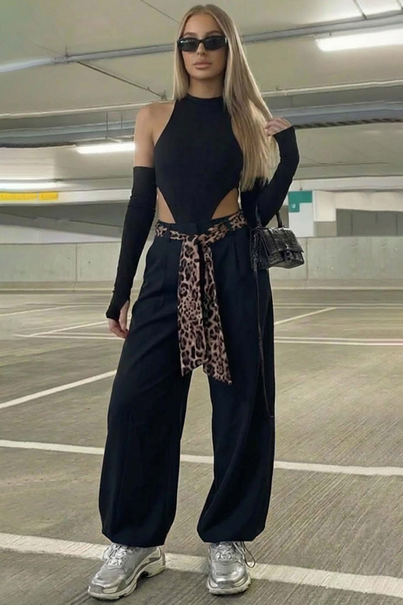 Cargo παντελόνι σε loose-fit γραμμή αποτελεί το απόλυτο statement κομμάτι για ένα αναβαθμισμένο street style look. Διαθέτει ψηλόμεση εφαρμογή, πρακτικές πλαϊνές τσέπες και μια τολμηρή leopard ζώνη που δημιουργεί την τέλεια αντίθεση, συνδυάζοντας την urban άνεση με μια chic λεπτομέρεια που μαγνητίζει τα βλέμματα
