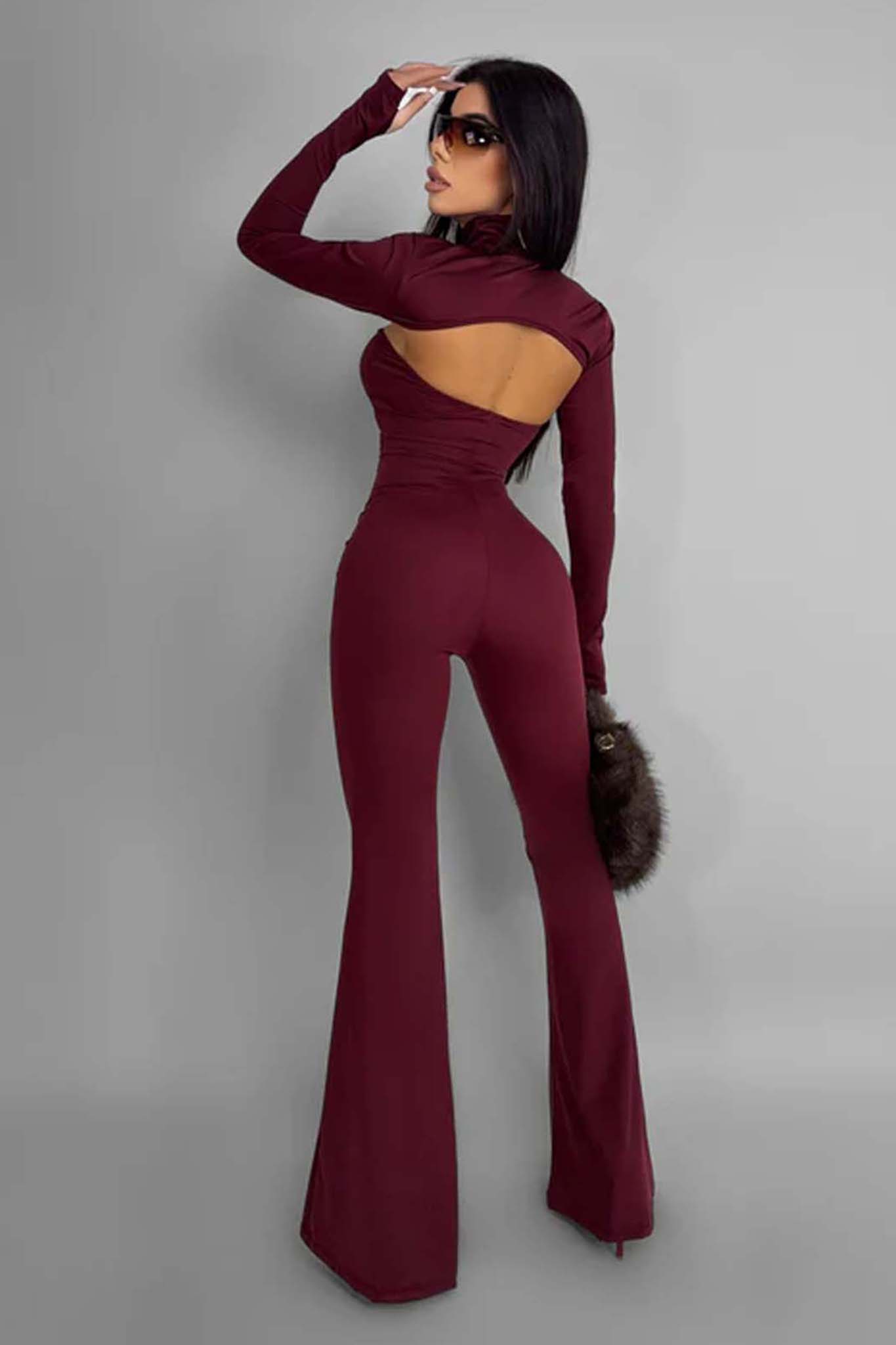 Huasoολόσωμη φόρμα cut out μπορντό