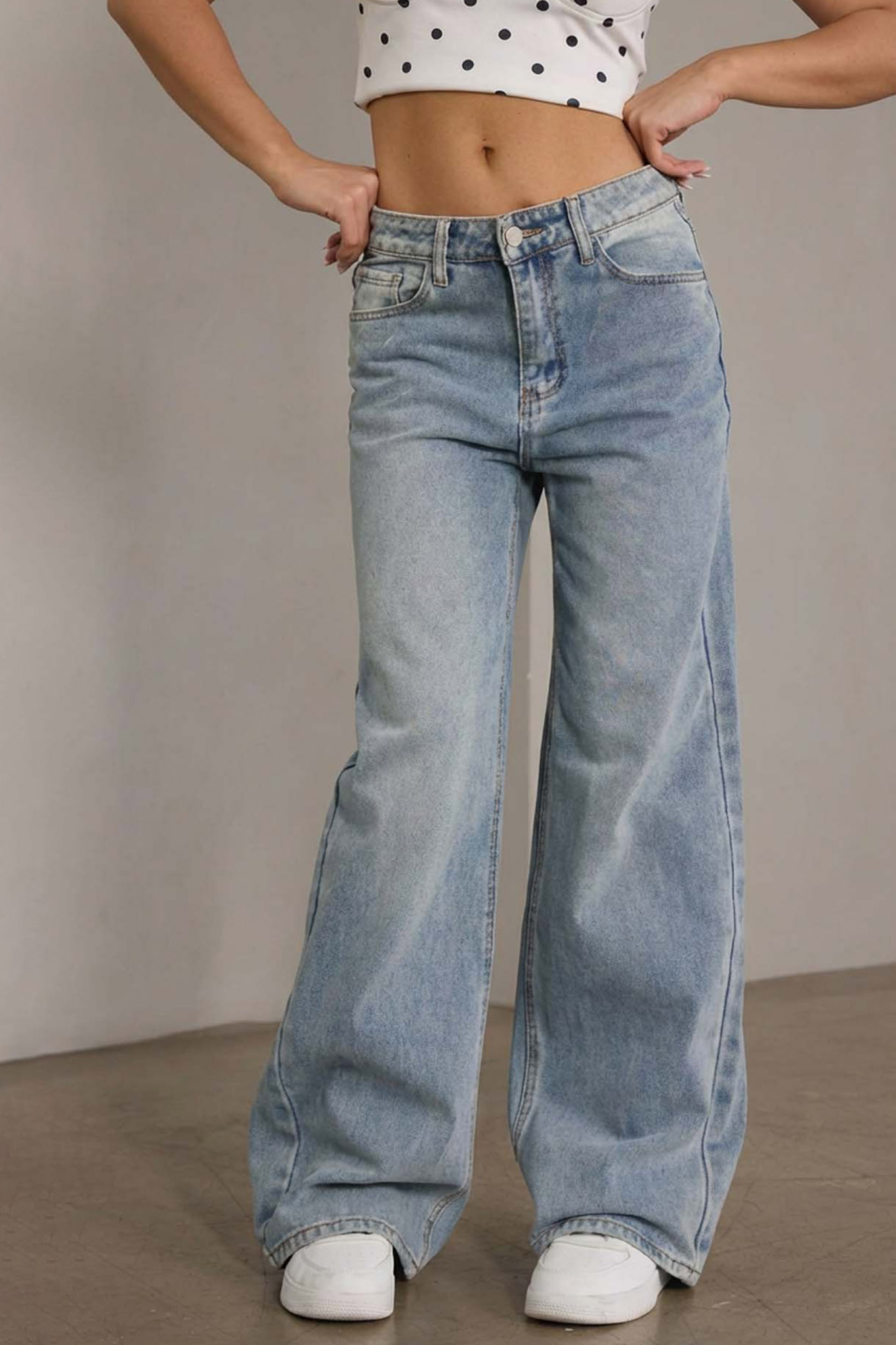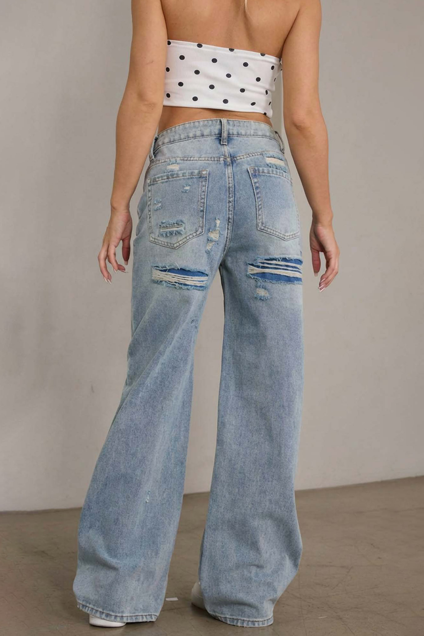 Τζιν παντελόνι που συνδυάζει την άνετη wide-leg γραμμή με τολμηρά σκισίματα στο πίσω μέρος κάτω από τις τσέπες. Το vintage “washed” εφέ και η ψηλόμεση εφαρμογή του το καθιστούν το απόλυτο statement κομμάτι για baddie εμφανίσεις που ξεχωρίζουν.