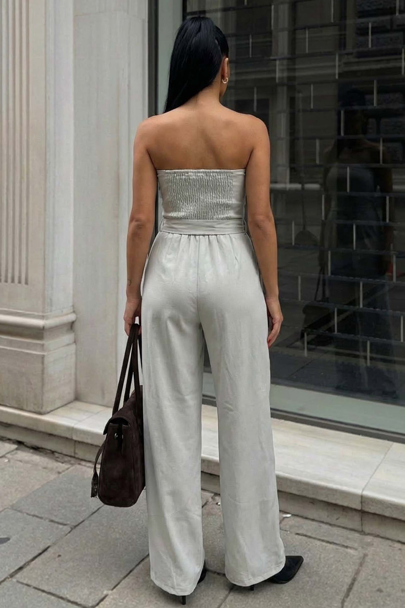 Αναβαθμίστε τις επίσημες και casual-chic εμφανίσεις σας με αυτή την κομψή ολόσωμη φόρμα. Διαθέτει διαχρονικό στράπλες σχεδιασμό που αναδεικνύει τους ώμους και ενσωματωμένη ζώνη στη μέση με μεταλλική αγκράφα για τέλεια εφαρμογή και θηλυκή σιλουέτα.