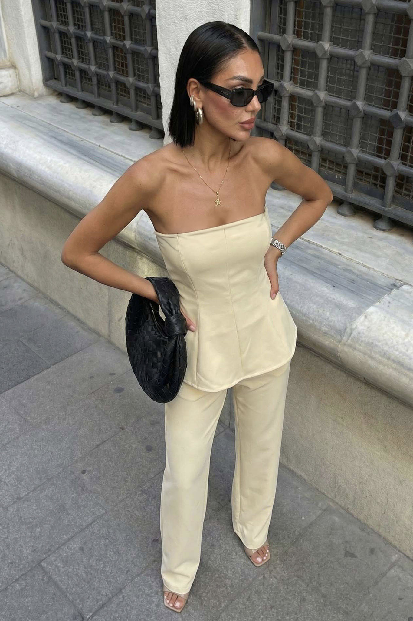 Ilyinσετ στραπλές τοπ με παντελόνι κίτρινο