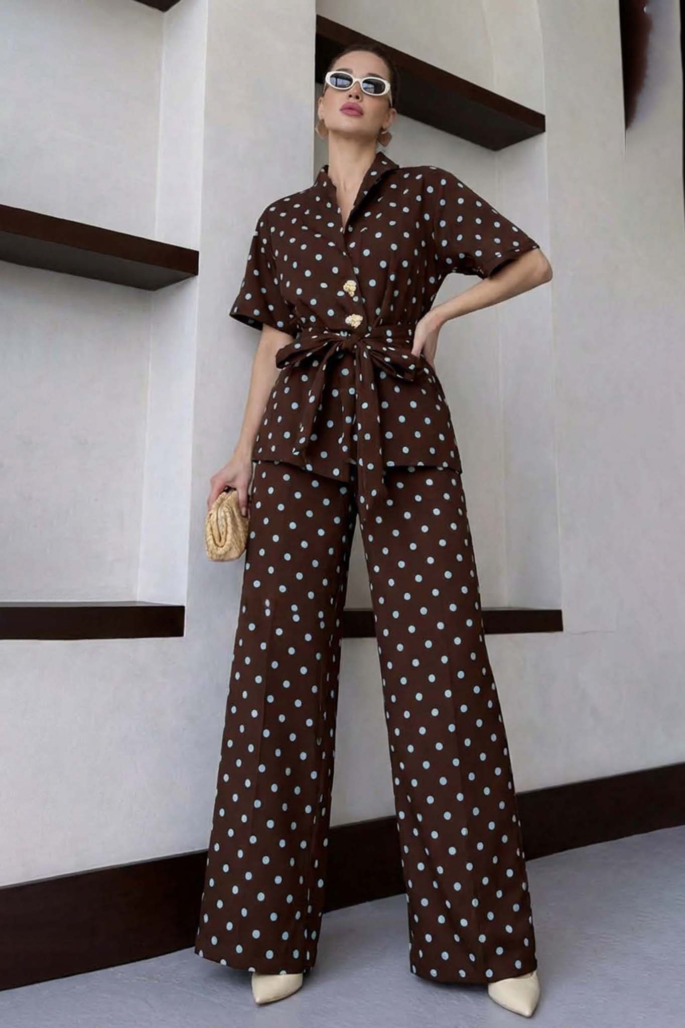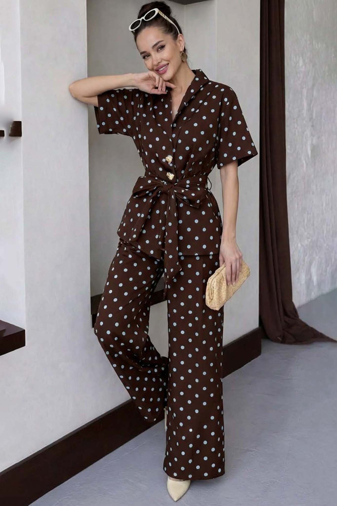 Indilaσετ πουκάμισο παντελόνι πουά καφέ