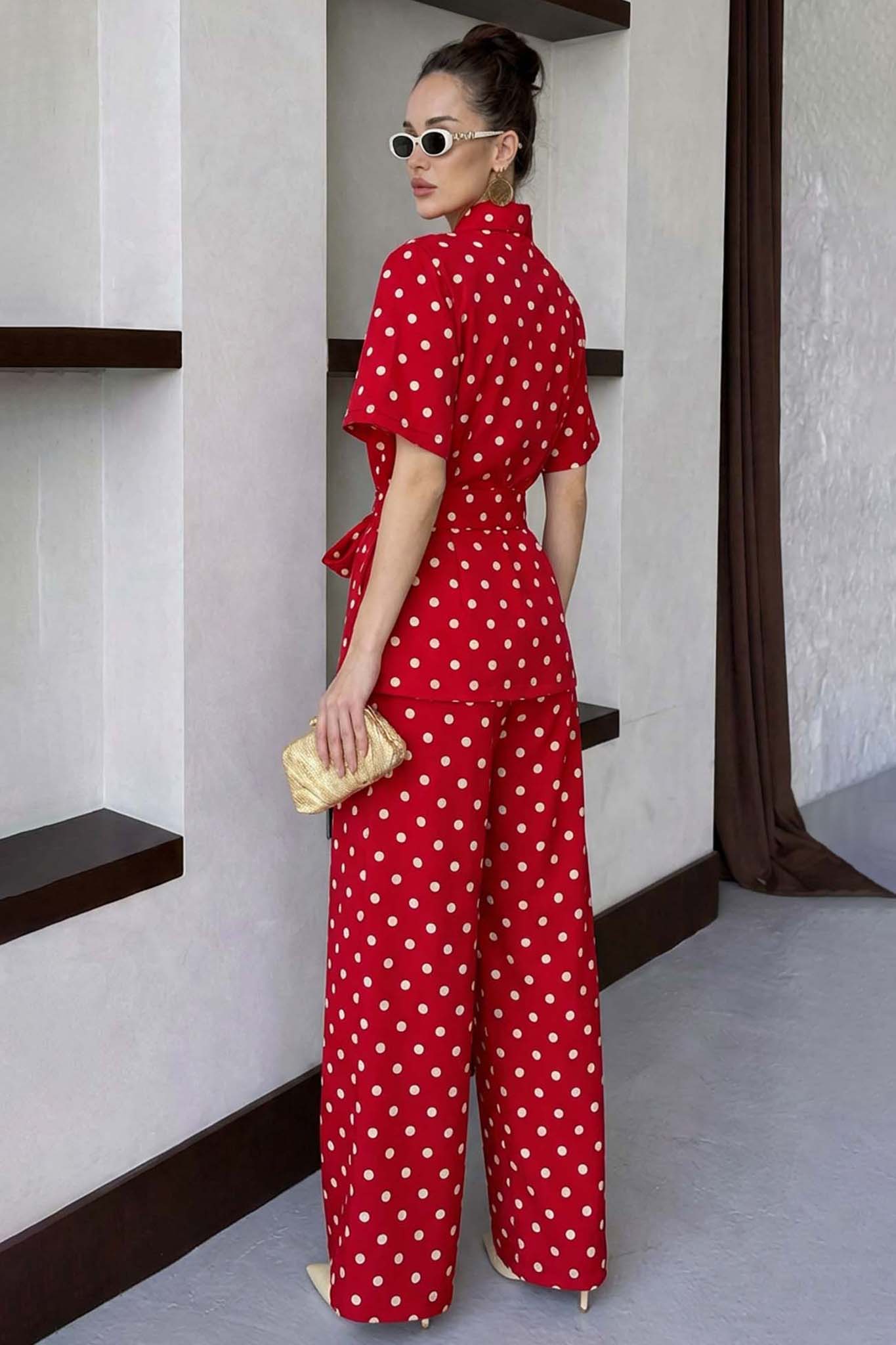 Indilaσετ πουκάμισο παντελόνι πουά κόκκινο