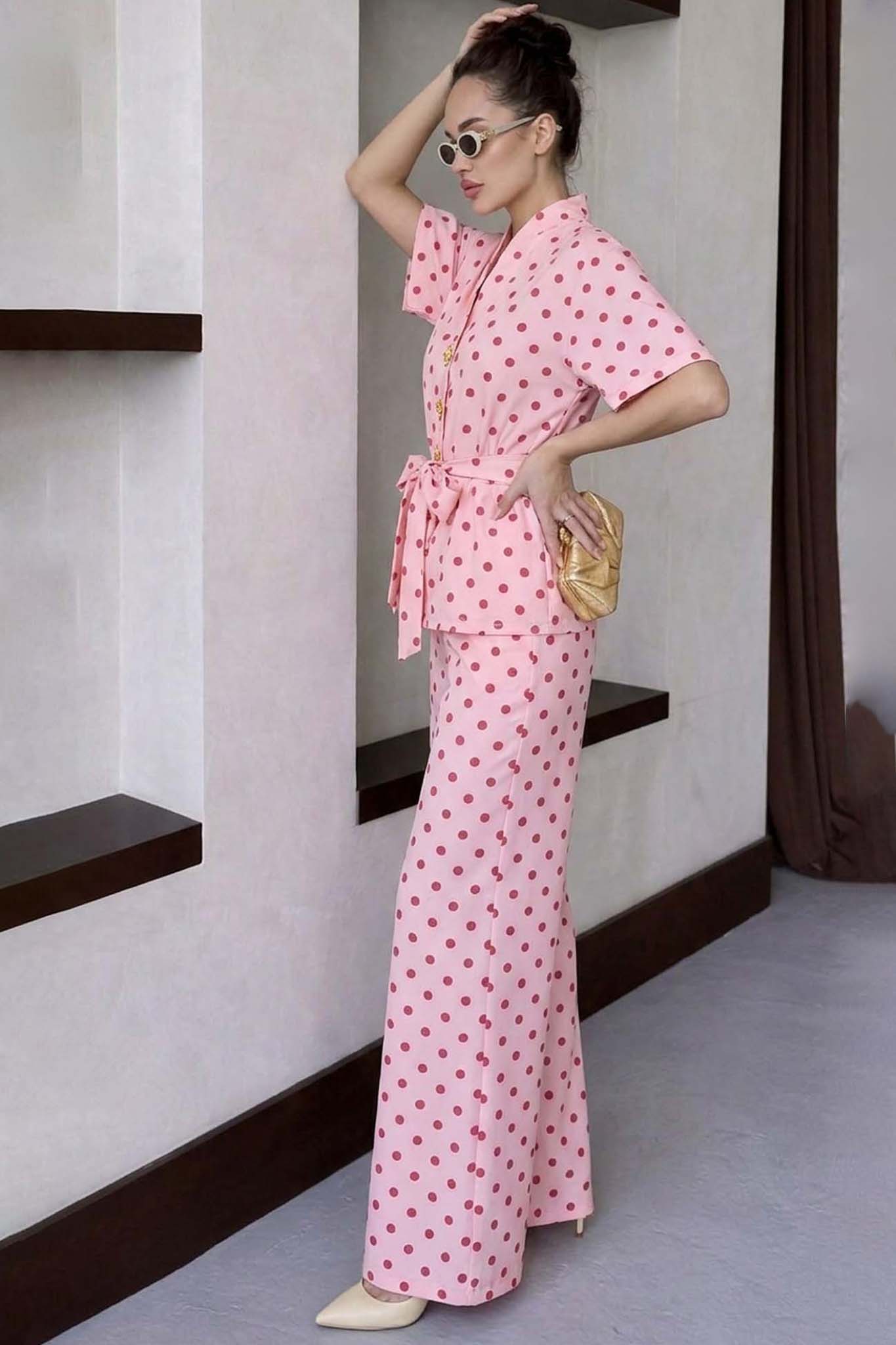 Indilaσετ πουκάμισο παντελόνι πουά ροζ